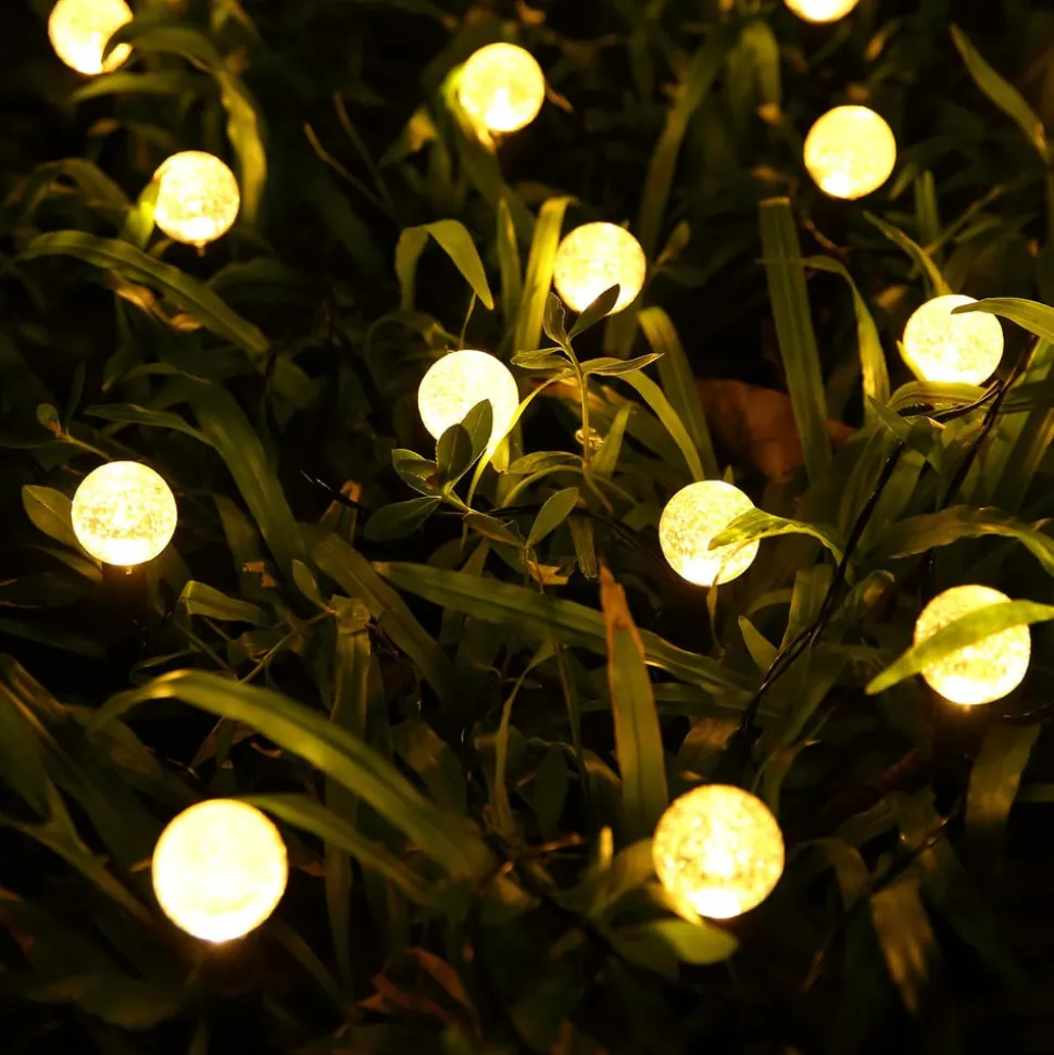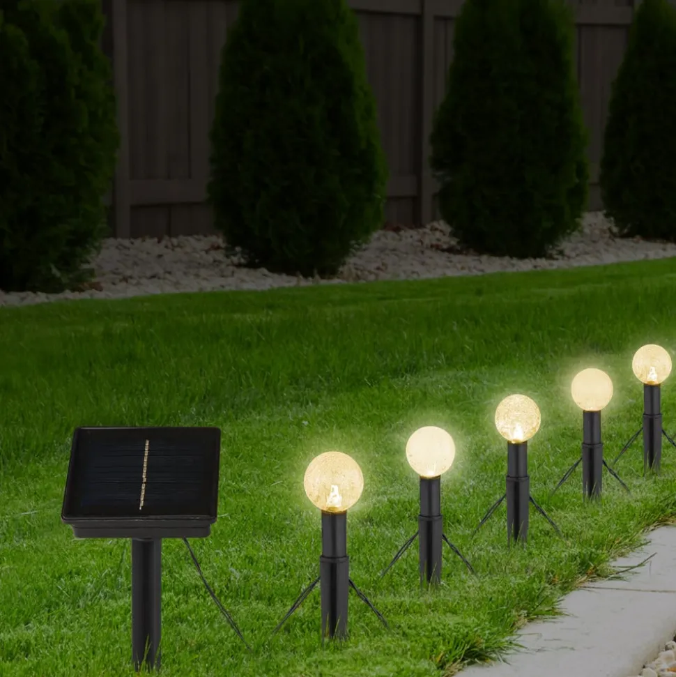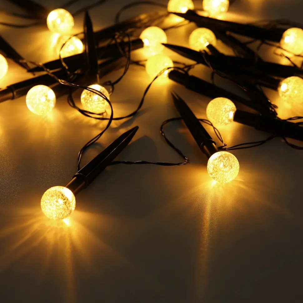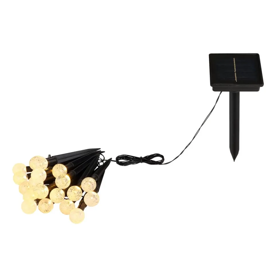 - Ø lampen 3 cm; lengte van de toevoerleiding 200 cm; zonnepaneel met aardspies – lengte 9,5 cm, breedte 9,5 cm, hoogte 23 cm