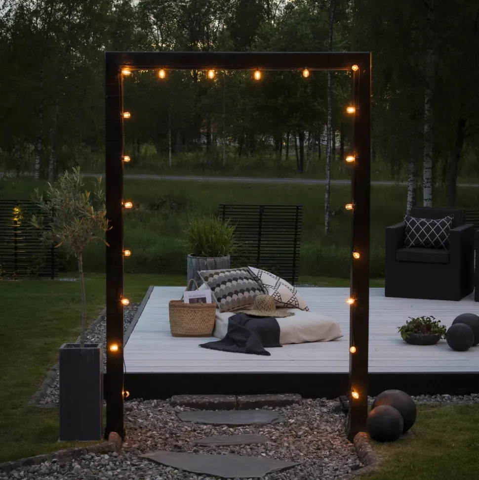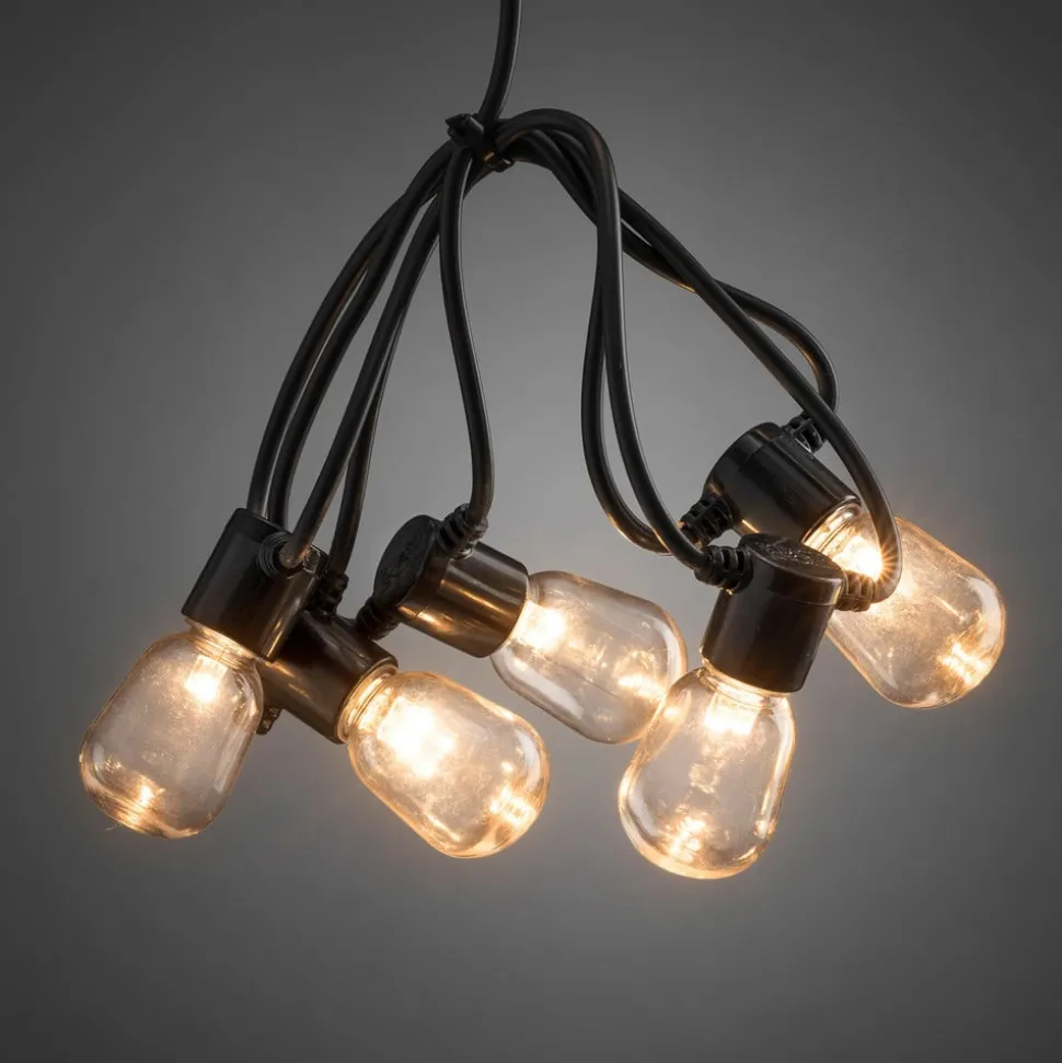 Zacht, amberkleurig licht – LED lichtketting biergarten, 40 stuks Die Modieuze LED lichtketting biergarten creëert een heel speciale sfeer in buitenruimtes met zijn 40 heldere druppelvormige lampen. Deze druppels bevatten moderne lichtgevende diodes Die schijnen met een zeer warm, berstein-achtig licht en creëren een magische sfeer. Ideal voor het versieren van balkons, patio’s, pergola’s of elke andere ruimte in de tuin, de biertuinketting creëert de juiste sfeer op elk moment, of het nu voor een groot feest of een gezellige barbecueavond is. Naast een 10 m lange voedingskabel wordt de biertuin LED lichtketting ook geleverd met een bijpassende 6 V buitentransformator – Lichtopbrengst instelbaar op de transformator