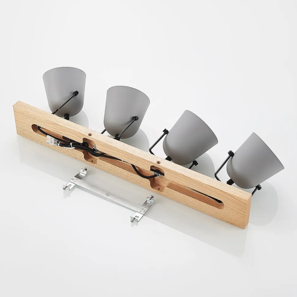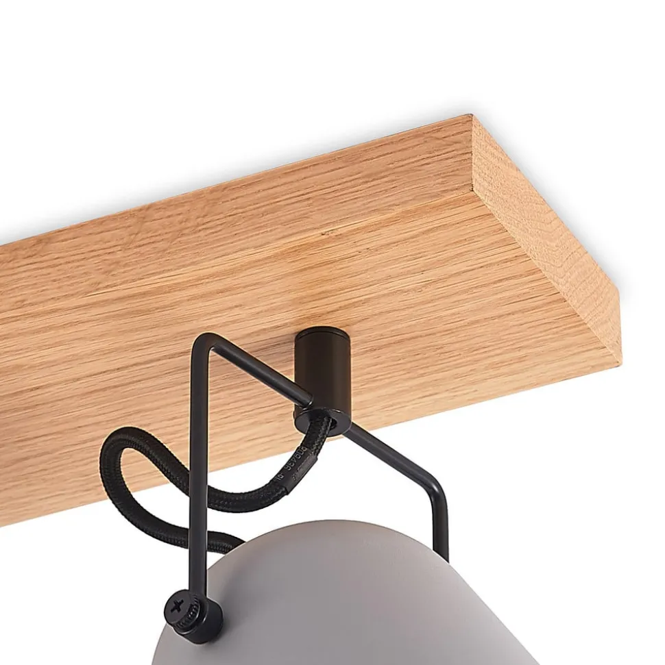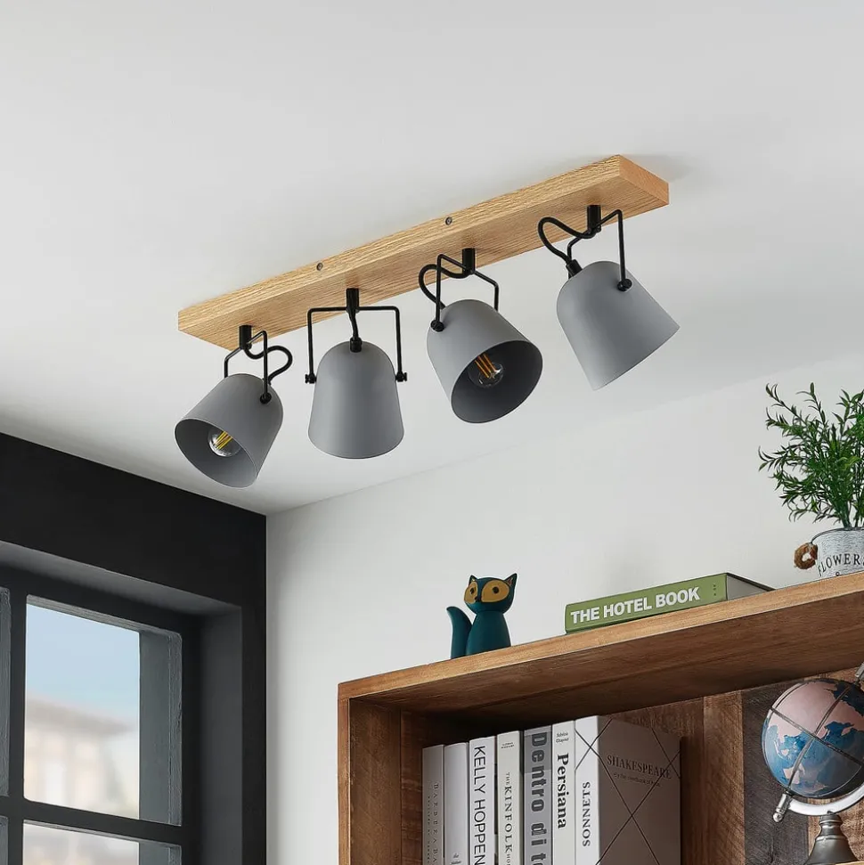 Met zijn lange buitenkant biedt Adalin ruim voldoende licht voor het interieur. De plafondarmatuur is gemaakt van licht eikenhout en draagt vier lampenkappen, die gemaakt zijn van grijs staal en kunnen worden uitgerust met E14-lampen. De armatuur is perfect geschikt voor montage in een woonkamer, maar slaat ook in de hal een super figuur. Het houten element geeft Adalin een discrete landhuis-flair en genereert een gezellige sfeer binnen de binnenhuisinrichting. Zo is de plafondlamp niet alleen een alledaagse lichtbron, maar overtuigt zij ook als stijlvol decoratief object.