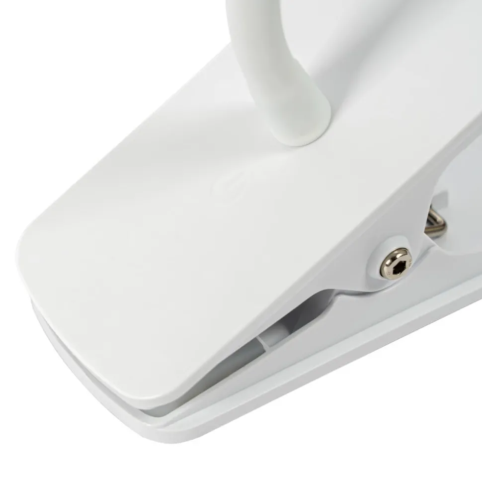 Witte LED klemlamp Ailina met ronde kap en touchdimmer Deze lamp is zeer geschikt voor op het bureau of op een plank en wordt met een klemvoet stevig aan het betreffende object bevestigd. De lampenkop kan naar wens worden uitgelijnd, zodat je met deze LED klemlamp altijd het juiste lichtpatroon kunt creëren. Het witte oppervlak zorgt voor een tijdloze look en de LED klemlamp ziet er in zijn geheel ook zeer elegant uit en past zowel praktisch als visueel zeer goed bij moderne inrichtingen. Dankzij een touchdimfunctie kan de helderheid van Ailina desgewenst in drie fasen worden aangepast.