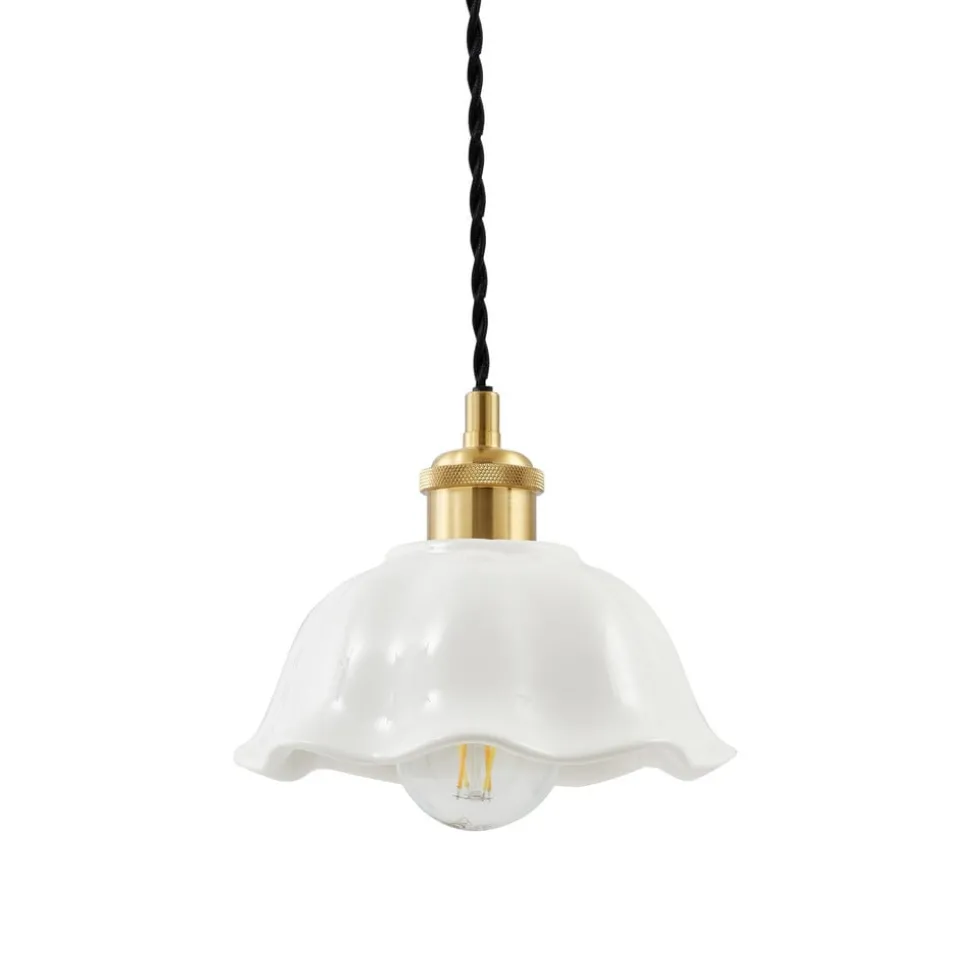 Hanglamp Annegret: elegantie in keramiek en messing Het ontwerp van hanglamp Annegret combineert de tijdloze elegantie van wit keramiek met elegante messing accenten en past naadloos in moderne inrichtingsconcepten. ALS stijlvol verlichtingselement voor de woonkamer, eethoek of keuken creëert deze lamp een sfeer die uitnodigt tot zowel ontspanning als creativiteit. De mogelijkheid om de lichtsterkte aan te passen via een externe dimmer biedt extra flexibiliteit om de verlichting aan te passen aan de stemming en activiteit. Met de Annegret hanglamp wordt licht een designelement dat ruimtes transformeert en emoties beïnvloedt.