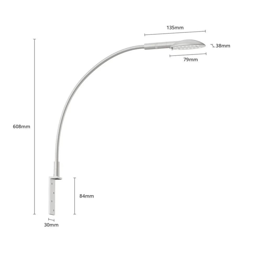 De LED-opbouwmeubellamp Apolonia is een discrete begeleider wanneer het erom gaat een meubelstuk te verlichten. Hij is gemaakt van zilverkleurig aluminium en heeft een flexarm waarmee de compacte lampenkap flexibel kan worden uitgelijnd. De permanent geïnstalleerde LED’s produceren een warm wit licht dat perfect is voor gebruik binnenshuis. De LED-opbouwmeubelarmatuur Apolonia heeft een discrete schakelaar aan de lampenkap, waarmee ze eenvoudig kan worden in- en uitgeschakeld. Het eenvoudige uiterlijk van de armatuur kan moeiteloos worden geïntegreerd in verschillende inrichtingsstijlen en past perfect bij het meubilair.