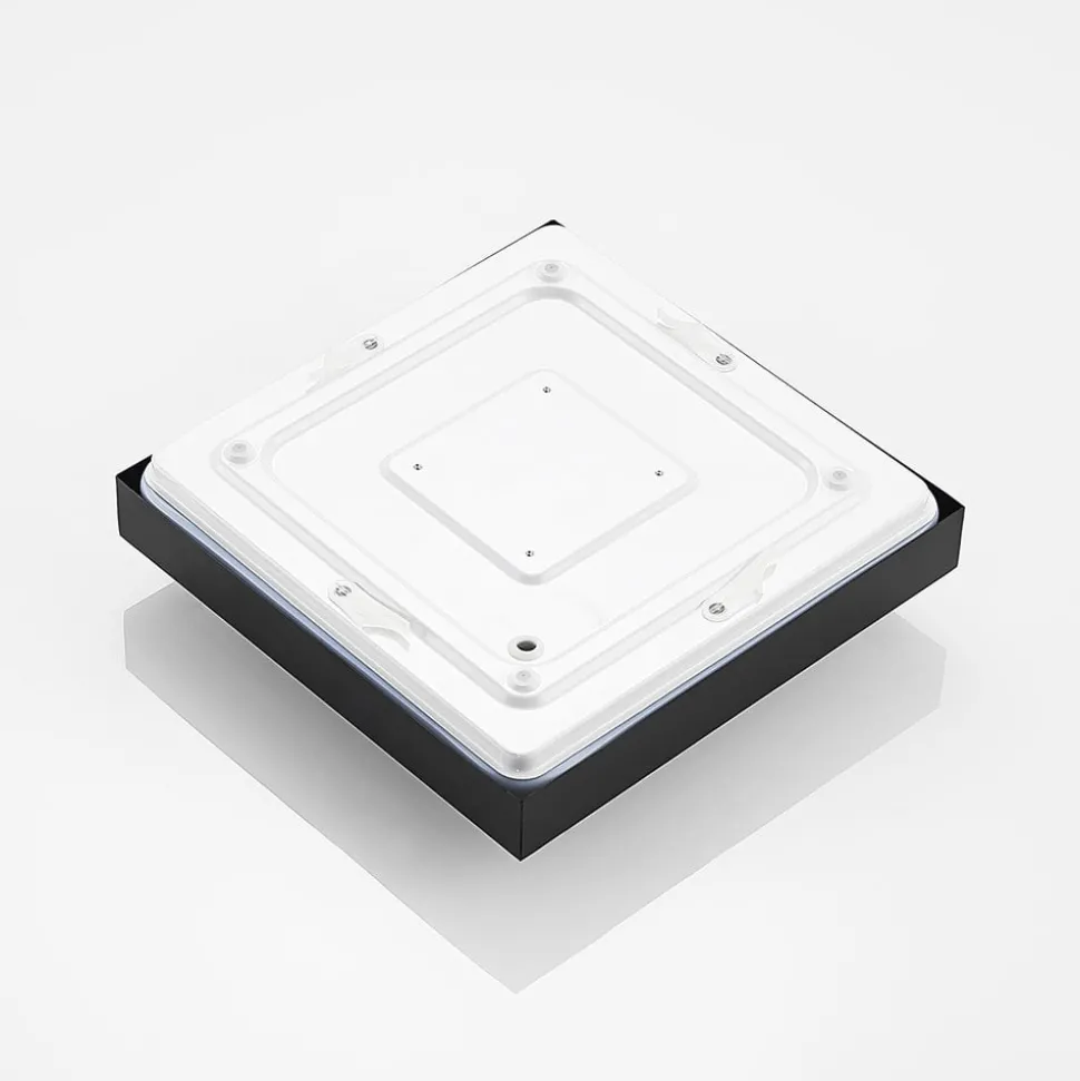 De stijlvolle LED plafondlamp Atilio vindt de perfecte plek, vooral in een slaapkamer of een studeerkamer. Het vierkante frame is gemaakt van zwart aluminium, terwijl het midden in helder wit verschijnt. De LED’s die daarachter permanent zijn geïnstalleerd, genereren een warm wit licht en een geschikte sfeer voor het interieur. De slanke vormgeving van de LED-plafondlamp Atilio zit direct aan het plafond en neemt minder ruimte in beslag dan bijvoorbeeld een uitgestrekte plafondlamp. Het eenvoudige kleurcontrast van zwart en wit is geschikt voor een breed scala aan interieurstijlen en integreert zich moeiteloos met de rest van het meubilair zonder het te overschaduwen.
