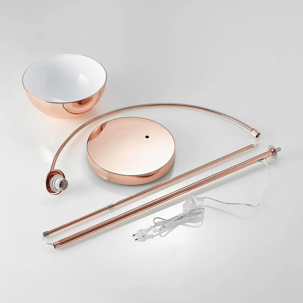 Lindby booglamp Lennart, koper, in hoogte verstelbaar, E27