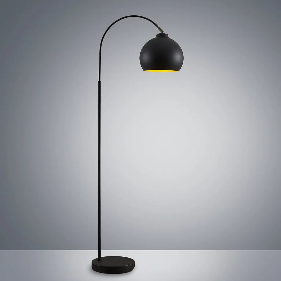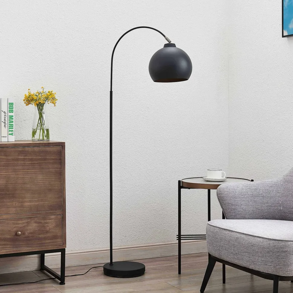 Zwarte vloerlamp Minali in stijlvolle boogvorm