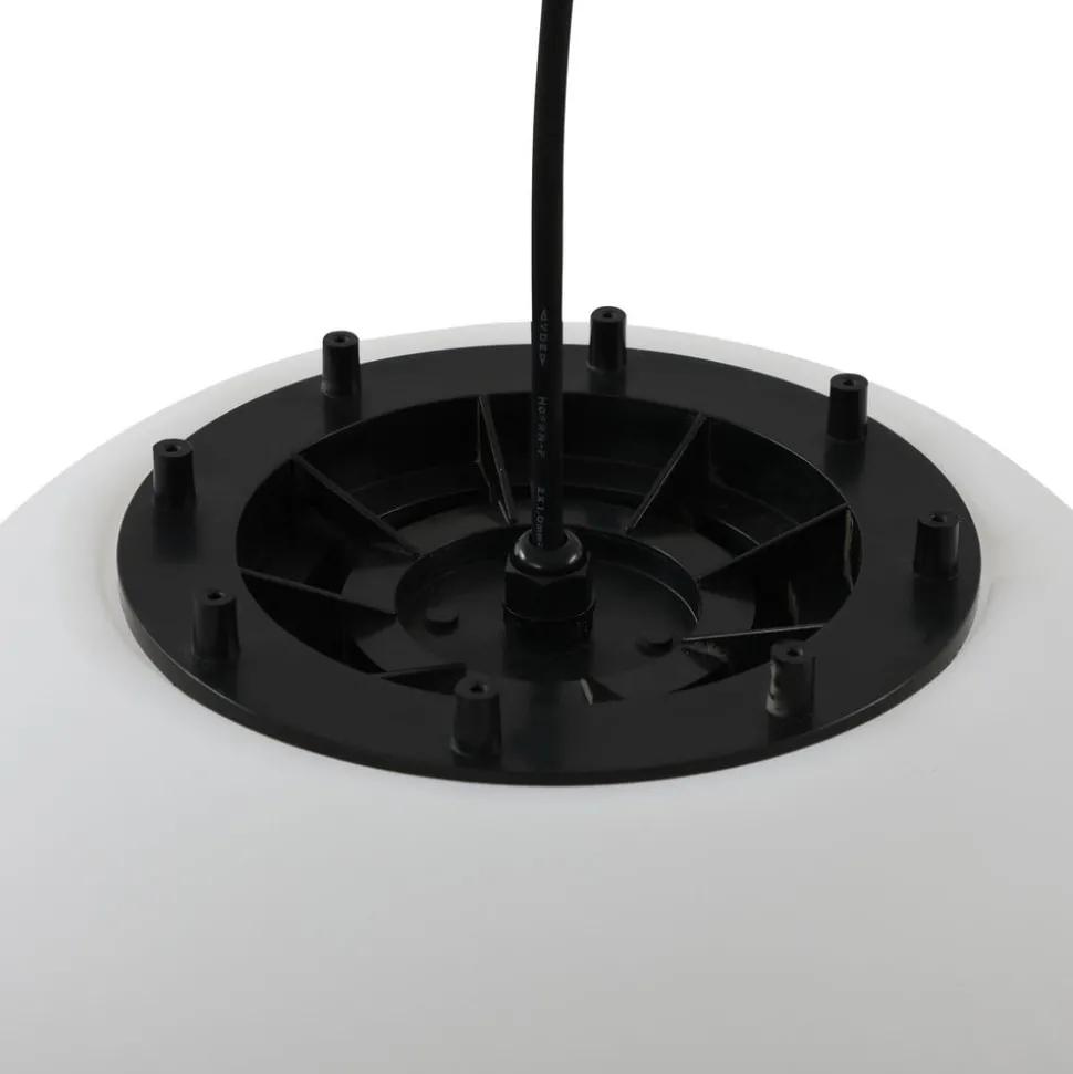 De bolvormige buiten hanglamp Alea is geheel in wit uitgevoerd en daardoor optisch zeer eenvoudig en ingetogen. Het gelijkmatige, niet-verblindende licht zorgt voor een goede algemene verlichting in de buitenruimte. Dankzij IP44 is hij daar uitstekend op voorbereid. De ronde kap is volledig van kunststof en gemonteerd aan een zwarte kabel en baldakijn.