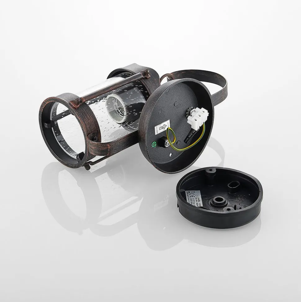 Farly – nostalgische buitenwandlamp met roestbruine look Het is de blikvanger op elke gevel – de Farly buitenwandlamp met haar nostalgische design. Een roestbruin aluminium frame met speelse elementen ondersteunt een kap van bubbelglas. Deze omsluit de interne fitting E27, die ideaal is voor decoratieve filament lampen. Het licht van de Farly buitenwandlamp schijnt rondom en zorgt voor een zeer aangename gloed en voldoende oriëntatie in het donker dankzij het bubbelglas. Als buitenwandlamp is Farly ideaal voor het verlichten van gevels. Het armatuur is ook ideaal voor entrees of als decoratieve buitenlamp op balkons en patio’s.
