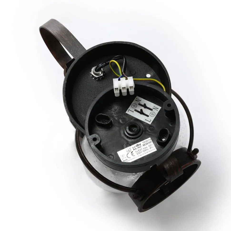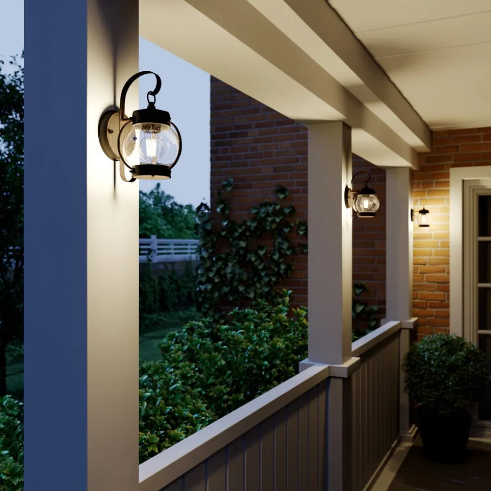 Blikvanger bij dag en nacht – Gerlo buitenwandlamp De rustieke Gerlo buitenwandlamp is een echte blikvanger aan de gevel van het huis. Het aluminium frame, dat speelse, nostalgische elementen bevat, draagt een bolvormige kap die doet denken aan een kleine lantaarn. De glazen kap met ingesloten bubbels straalt het licht rondom uit naar de omgeving en creëert zo een zeer aangename gloed. Het transparante glas leent zich ook voor het gebruik van decoratieve filament lampen, die het nostalgische karakter van de Gerlo buitenlamp benadrukken.