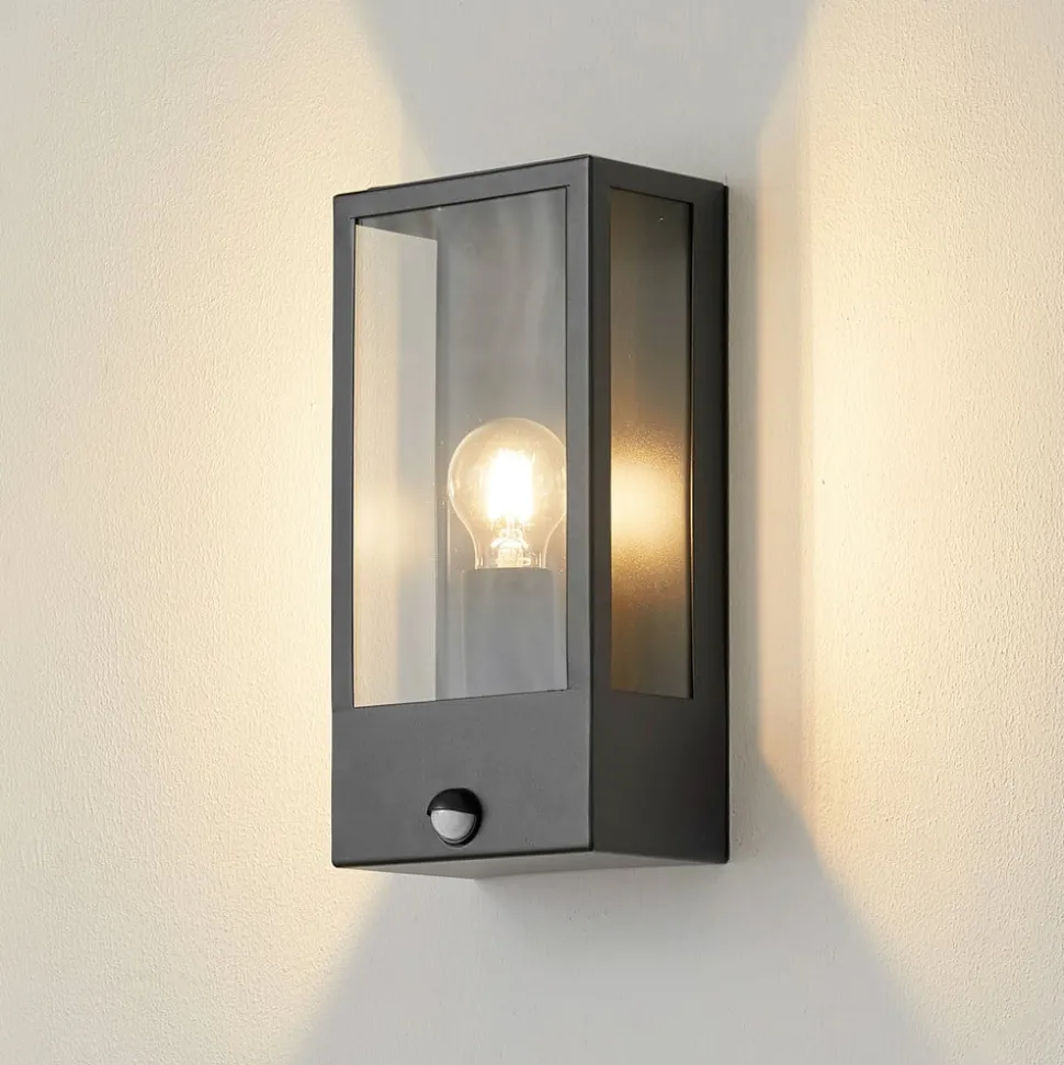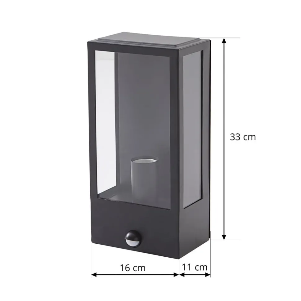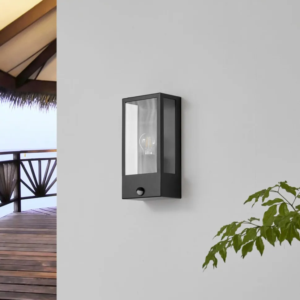 Lindby buitenwandlamp Ilana, zwart, sensor, IP44, E27