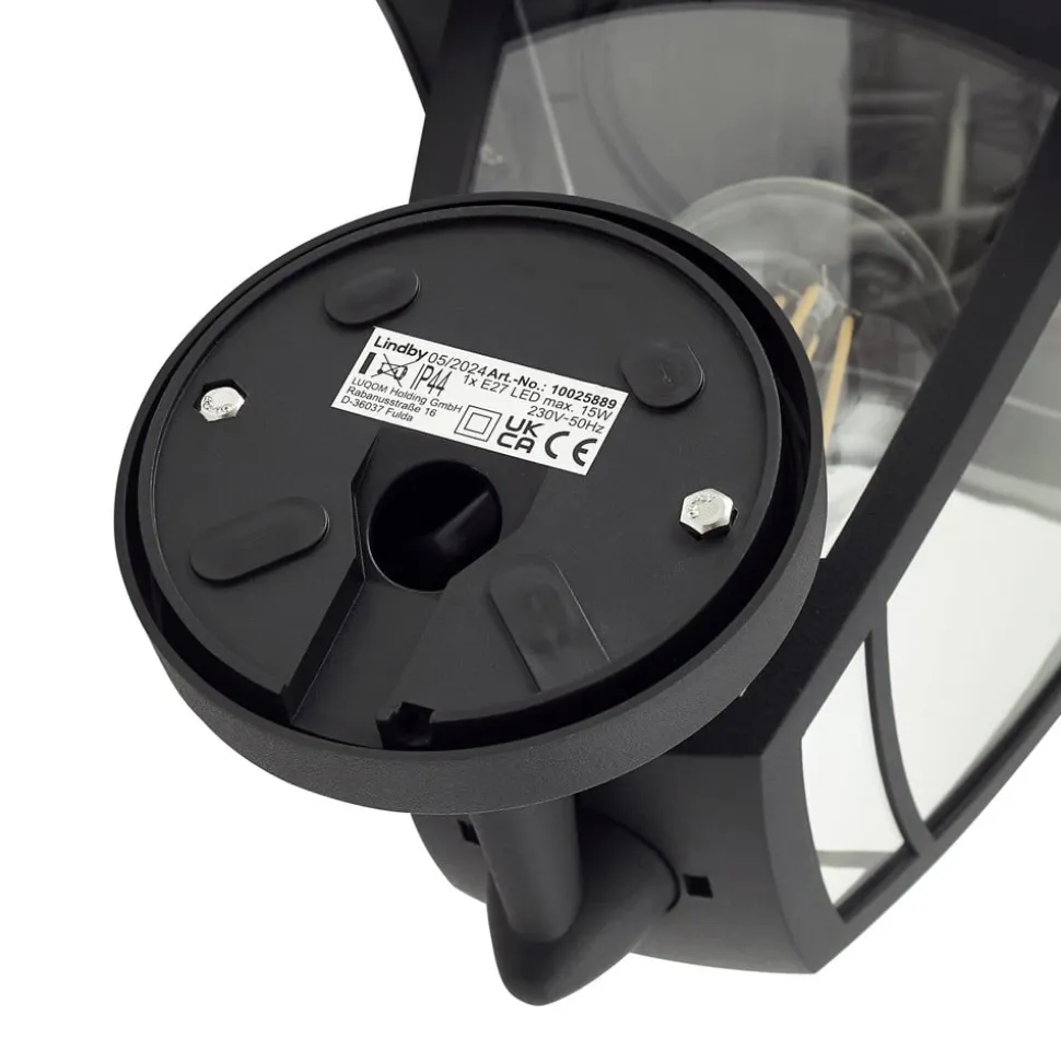 Lindby buitenwandlamp Isidoro, zwart, lantaarn, kunststof