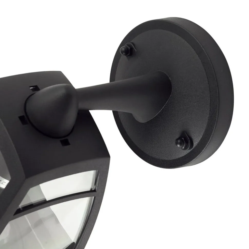 Isidoro buitenwandlamp in moderne lantaarnstijl De Isidoro buitenwandlamp in zwart met transparante kunststof vensters verandert de sfeer van de buitenruimte op een aangename manier. Met haar moderne design dat doet denken aan een lantaarn, creëert deze kunststof lamp niet alleen sfeervolle verlichting, maar dient ze ook als stijlvol decoratief element in de buitenruimte. Hoewel er geen dimmer wordt meegeleverd, kan de helderheid van de wandlamp individueel worden aangepast met een externe dimmer om de gewenste sfeer te creëren, mits je kiest voor een dimbare lamp.