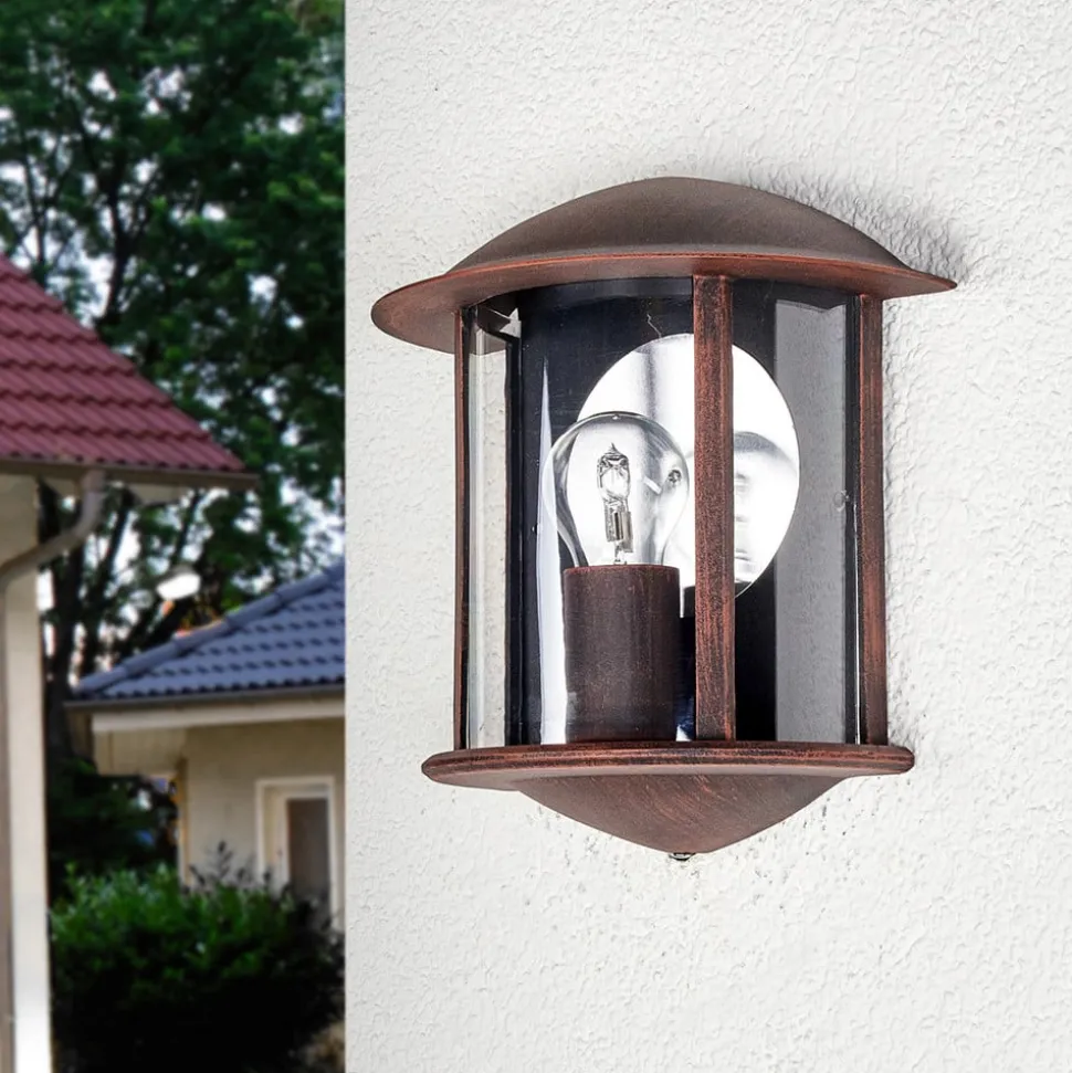Lindby buitenwandlamp Maelis, roestbruin, metaal, 27cm, E27