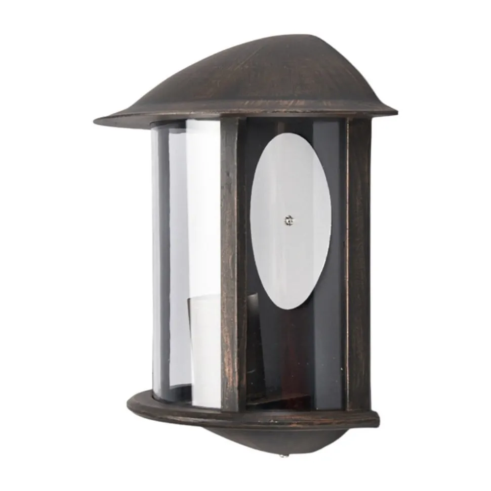 Rustiek ogende buitenwandlamp Maelis met roestbruin oppervlak Het is niet in de laatste plaats de roestbruine, licht onregelmatige verflaag die van de buitenwandlamp Maelis een object met een rustieke uitstraling maakt en het zijn individuele charme geeft. Ze past perfect in een historische sfeer en is ook een bijzonder splintervrij exemplaar voor buiten dankzij de beschermkap van polycarbonaat.
