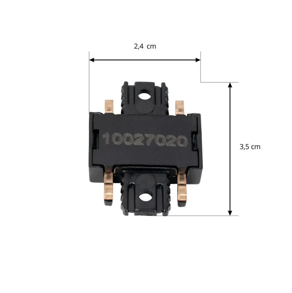 Lumaro connector van zwart plastic Met deze connector kunnen de componenten van het Lumaro railsysteem met elkaar worden verbonden. Er worden 2 connectors meegeleverd. Let op: het Lumaro railsysteem is alleen compatibel met accessoires uit de Lumaro serie. Combineer om verwarring met andere systemen te voorkomen alleen accessoires en railsystemen uit de gelijknamige serie.