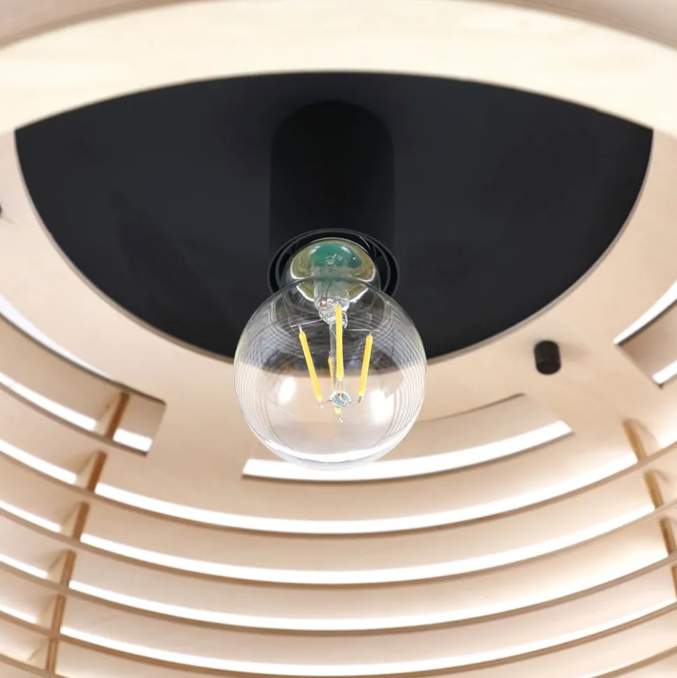 Ronde plafondlamp Ediz met meerlaagse houten kap De plafondlamp Ediz bestaat uit een ijzeren baldakijn en een open houten kap. De kleurstelling van de kap geeft de omgeving een natuurlijk tintje, dat wordt aangevuld door de baldakijn in modern zwart. Het open ontwerp van het armatuur creëert een mooi licht- en schaduweffect in de kamer en het licht wordt naar beneden en opzij naar buiten gericht. Een decoratieve lichtbron is bijzonder geschikt voor verlichting. Ediz kan flexibel worden gebruikt in de woonruimte, bijvoorbeeld als lichtbron in de woonkamer, hal, slaapkamer of eetkamer.
