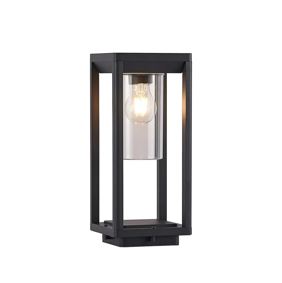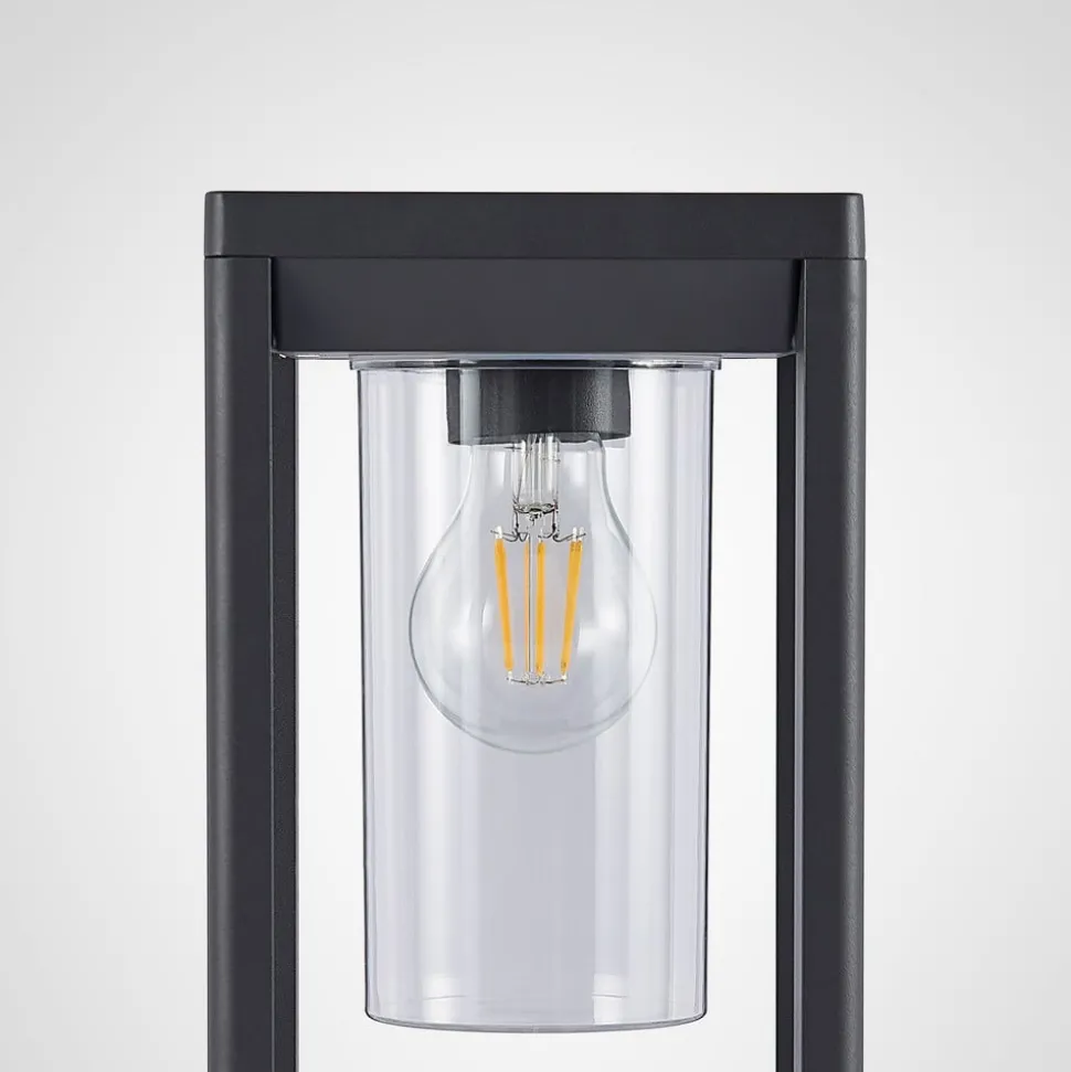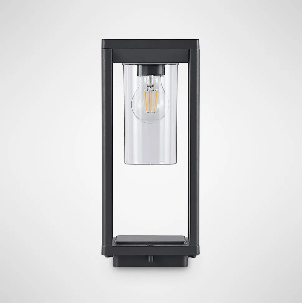 De Estami sokkellamp in een vierkante vorm De Estami sokkellamp maakt indruk met een eenvoudige en minimalistische uitstraling die zeker goed zal staan op elk modern terras of in een moderne tuin. Het aluminium frame heeft een rechtlijnige en opvallende uitstraling. De transparante kunststof kap binnenin geeft de lamp echter een zekere lichtheid. De lichtbron kan vrij worden gekozen door de gebruiker, hoewel decoratieve lampen, bijvoorbeeld in een trendy gloeilamplook, hier meer geschikt zijn.