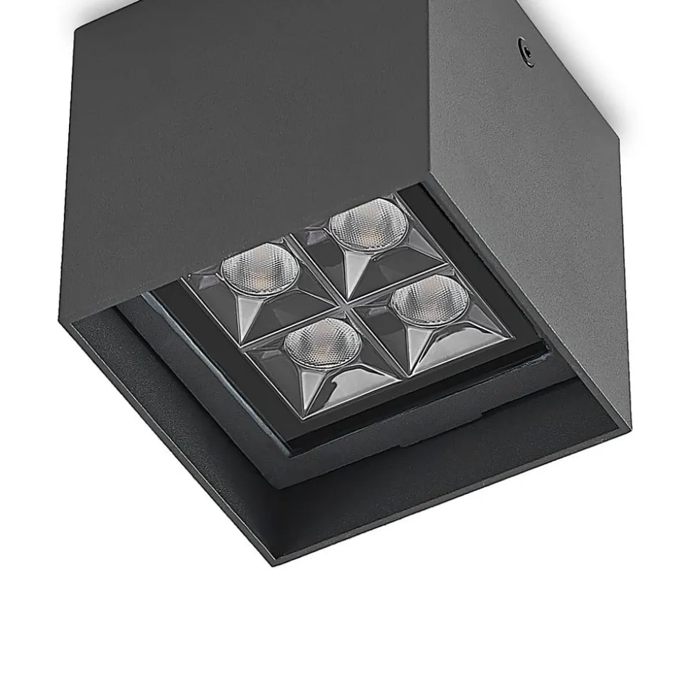 Lindby Eveta LED plafondlamp, 10 cm, antraciet, aluminium, IP65