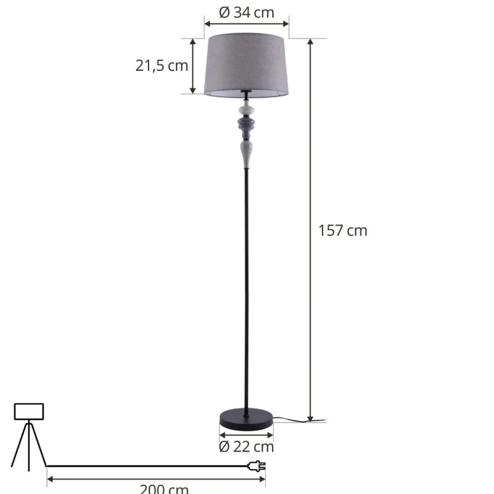 Lindby Haldorin vloerlamp, grijs/zwart, textiel, 157 cm