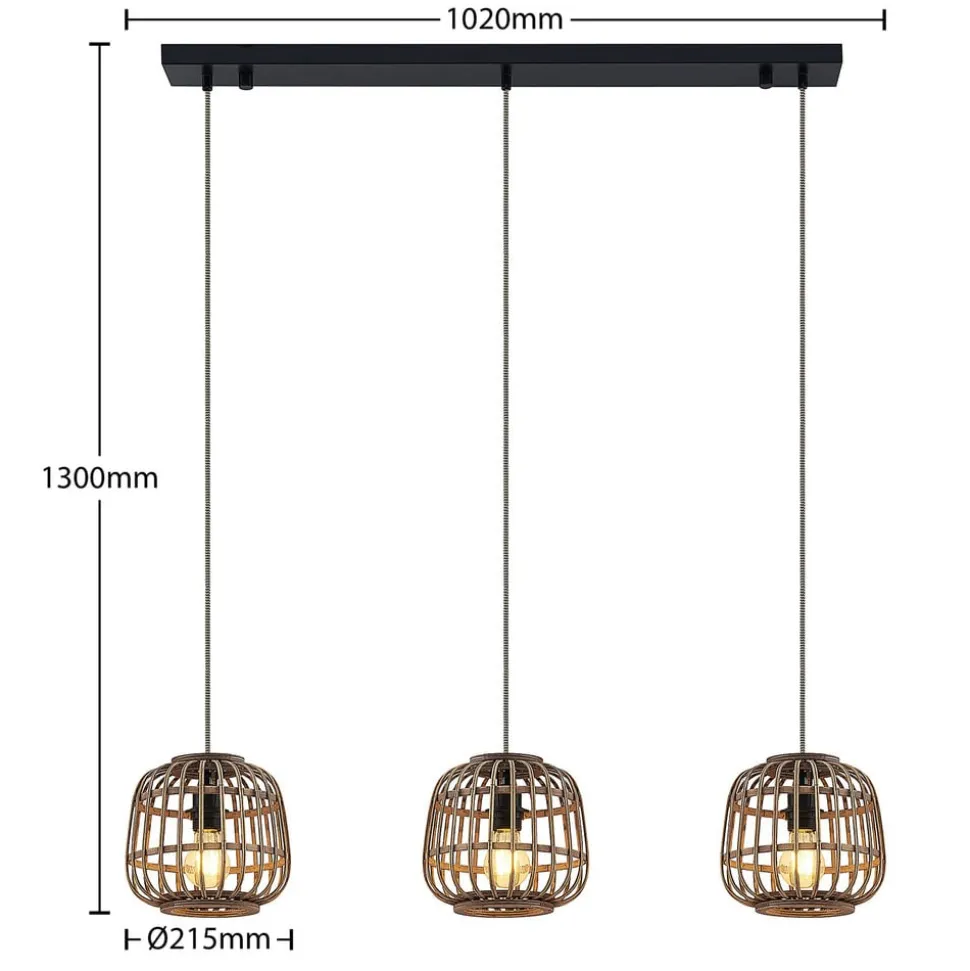 Lindby hanglamp Bominio, 102 cm, rotan, hout, E27