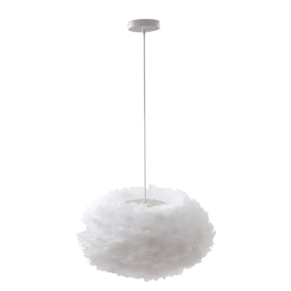 Hanglamp Heven – de speciale metgezel voor binnenshuis met een met veren bedekte kap Deze prachtig vormgegeven lamp zet geweldige lichtaccenten en geeft je interieur een speciaal tintje. Je kunt een externe dimmer (niet inbegrepen) gebruiken om je eigen persoonlijke sfeer te creëren. Met haar mooie uiterlijk maakt de plafondlamp het verlichtingsconcept van elke woonruimte op een aangename manier compleet. Je kunt in deze lamp lampen met een E27 lampvoet gebruiken. De hanglamp integreert met succes in je inrichtingsstijl en creëert een gezellige sfeer. Ze combineert alle kwaliteiten en HighLights die het merk Lindby kenmerken. Bij de vervaardiging is kunststof gebruikt. Dankzij haar mooie uiterlijk past de lamp in bijna elke sfeer en creëert ze een geweldig woongevoel. Met deze lamp creëer je een gezellige sfeer.