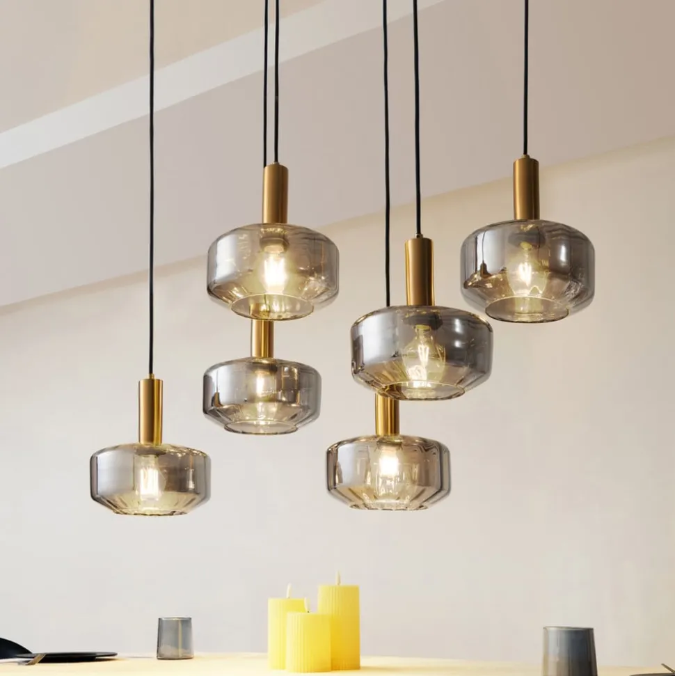 Lindby hanglamp Hildur, 6-lamps, rookgrijs, glas