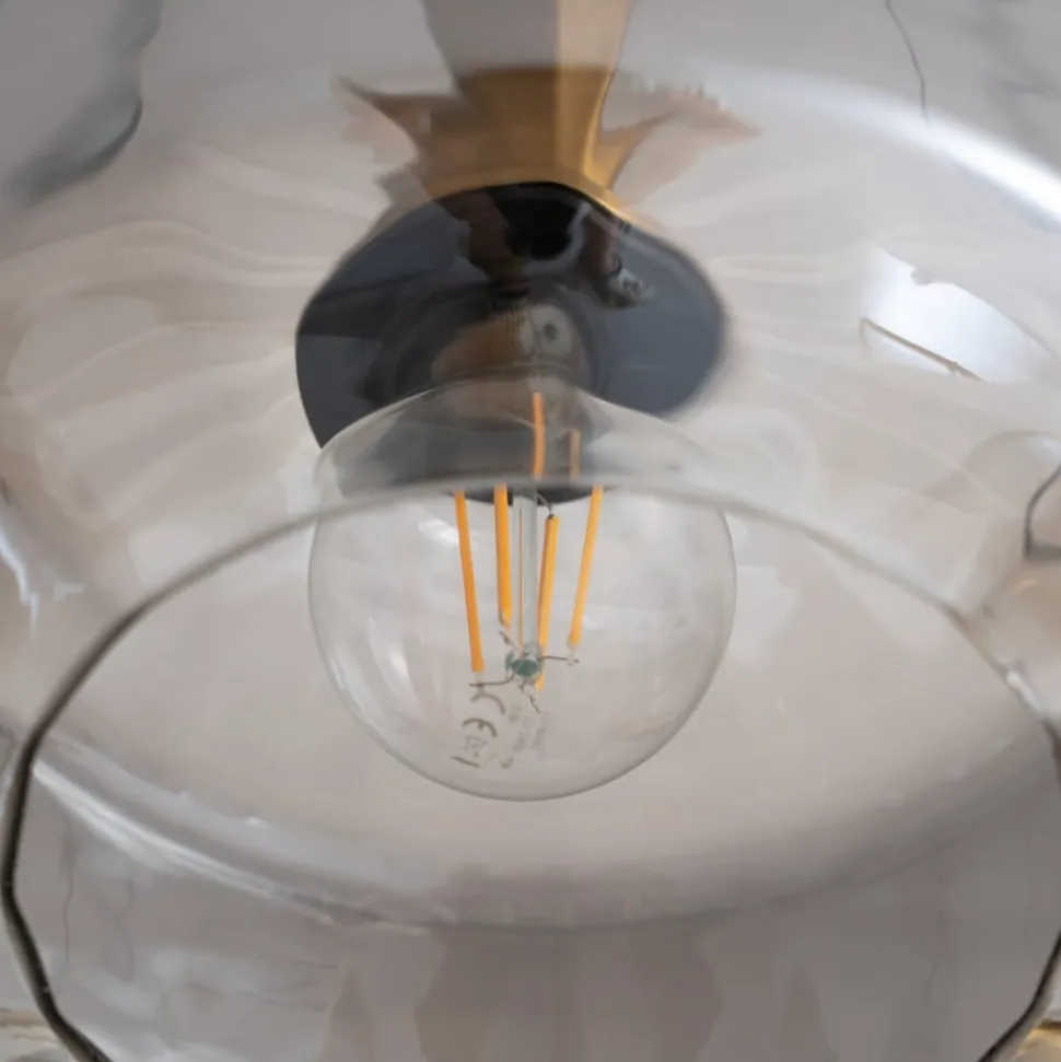Hanglamp Hildur in glazen 6-lamps design Ervaar hoe de hanglamp Hildur met zijn glazen 6-lamps design en moderne stijl elke kamer verandert in een oase van gezelligheid. Of het nu boven de eettafel in de eetkamer is of als centraal verlichtingselement in de woonkamer, deze lamp creëert een sfeer die uitnodigt om te ontspannen en creatief te zijn. Het fijne vakmanschap van het glas weerkaatst het licht op een manier die de kamer in een warme en uitnodigende sfeer hult. Hoewel de Hildur hanglamp niet is uitgerust met een geïntegreerde dimmer, biedt het wel de mogelijkheid om de lichtintensiteit aan te passen aan individuele voorkeuren met behulp van een externe dimmer (let op: de externe dimmer moet apart worden aangeschaft.