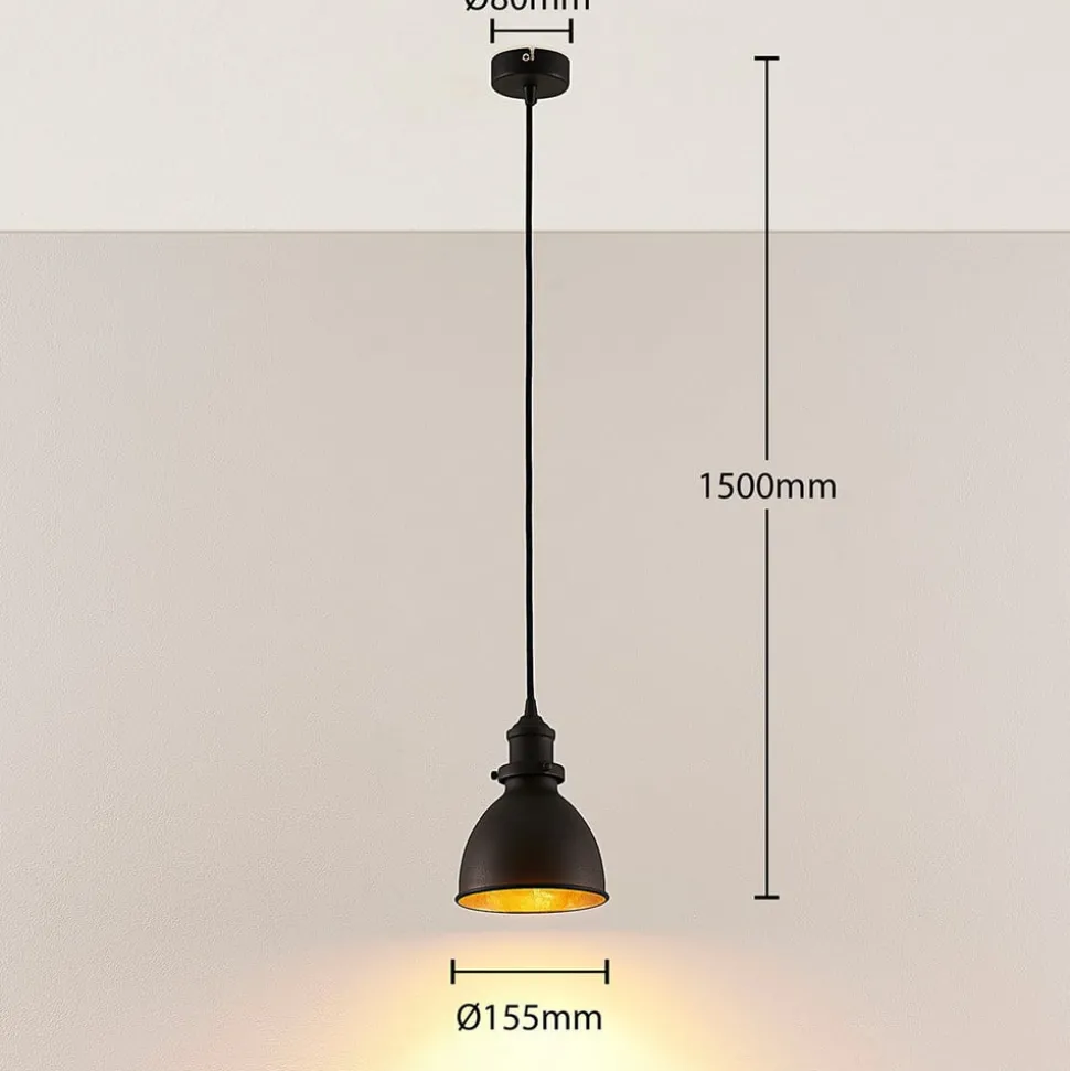 Lindby hanglamp Jasminka, zwart/goud, metaal, 1-lamp.