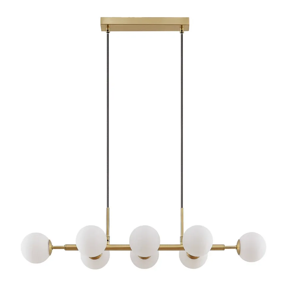 Lindby hanglamp Kiamo, 83 cm, messing, wit, glas, G9
