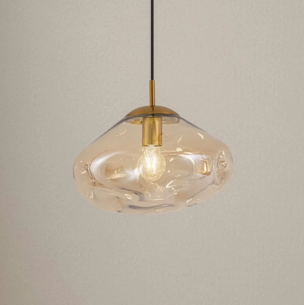 Lelia – 1-lamp glazen hanglamp met amberkleurige kap Ontdek de Lelia hanglamp, een meesterwerk van ontwerper Ingo Thiele, die indruk maakt met haar amberkleurige en messing kleurstelling. Deze lamp combineert design en moderne stijlen en past naadloos in de esthetiek van eet- en woonkamers. De hanglamp Lelia is niet alleen een visuele blikvanger, maar ook flexibel in haar functionaliteit. Hoewel een dimmer niet is inbegrepen, kan de helderheid worden aangepast met een externe dimmer om de gewenste sfeer te creëren. Van een rustgevende glans tot een verkwikkende helderheid – met deze lamp kun je de stemming in de kamer naar wens variëren.