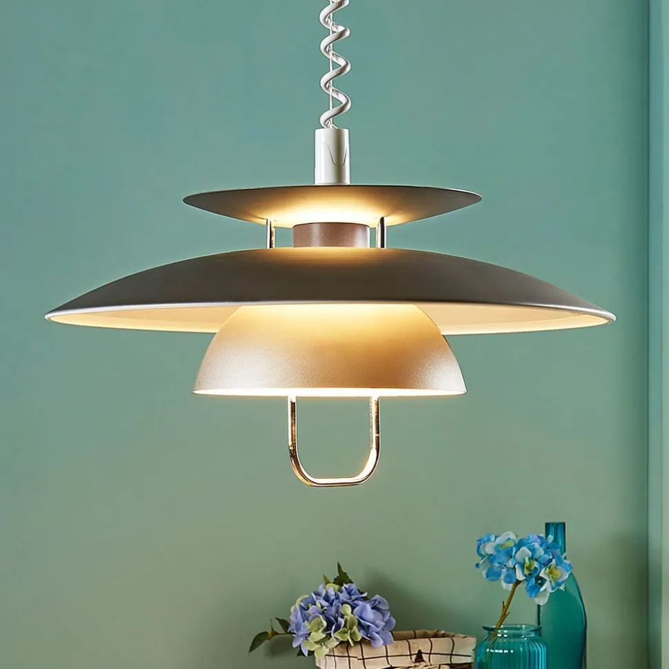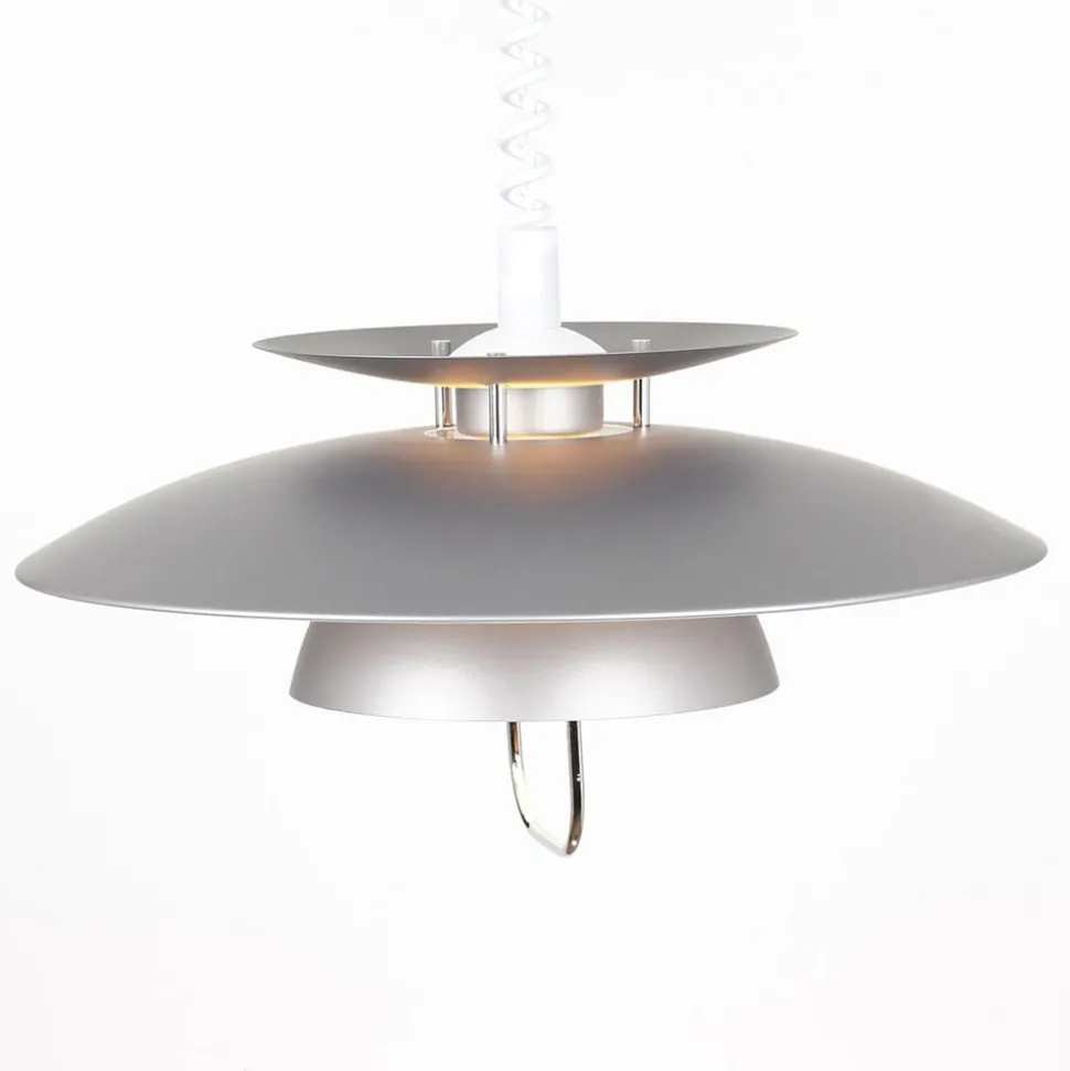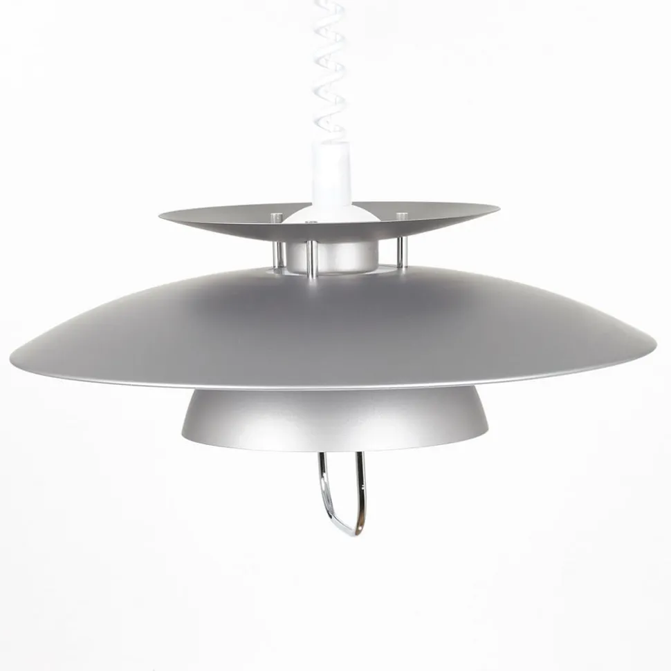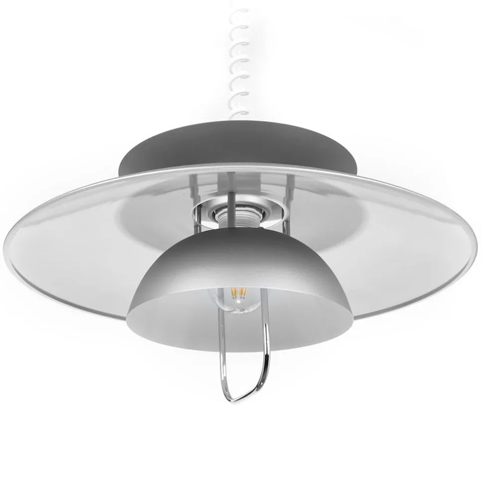 In hoogte verstelbare hanglamp voor eethoek Nadija met grijze afwerking Deze hanglamp is bedoeld voor gebruik boven een eethoek, waar ze zorgt voor een goede verlichting van het tafeloppervlak en een gezellige gloed van het licht in het algemeen. Hoe direct of indirect het licht wordt ervaren, hangt af van de hoogte waarop de kap is opgetrokken. Hoe lager hij hangt, hoe minder direct het licht wordt ervaren door de aanwezigen. Dankzij de spiraalvormige trekpendel kan de hoogte snel en gemakkelijk worden aangepast – indien nodig elke dag. Het enige wat je hoeft te doen is een snelle ruk geven aan de metalen beugel onderaan de kap. De grijze afwerking aan de hele buitenkant van de kap is ook het benadrukken waard. Dit zorgt voor een koele elegantie die gecombineerd kan worden met veel stijlvolle interieurs. Over het geheel genomen kan het stilistische ontwerp van de lamp worden gecategoriseerd als onderdeel van de Scandinavische look, die ook erg populair is in andere delen van Europa en wordt gewaardeerd om zijn designgerichte elegantie.