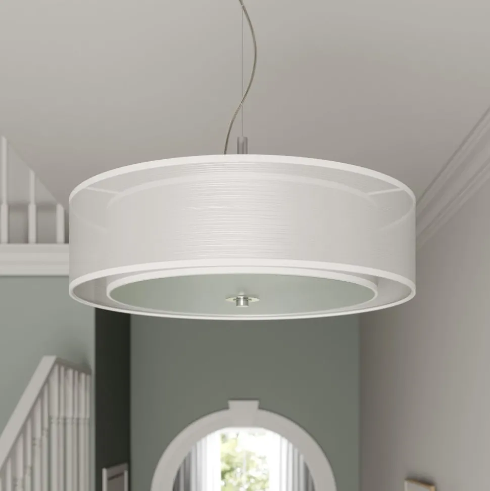 Aantrekkelijke Pikka hanglamp met cilindrische dubbele stoffen lampenkap De Pikka hanglamp bestaat uit een binnen- en een buitenkap. De buitenste kap is gemaakt van transparante organza, terwijl de binnenste kap gemaakt is van een stevigere stof. Dit betekent dat de binnenste door de buitenste schijnt, wat er natuurlijk eleganter uitziet dan wanneer je maar één kap zou hebben. Er is een extra glazen afdekplaat aan de onderkant en het totale effect is een absoluut zacht en warm licht dat van de woonkamer een gezellige en uitnodigende plek maakt.
