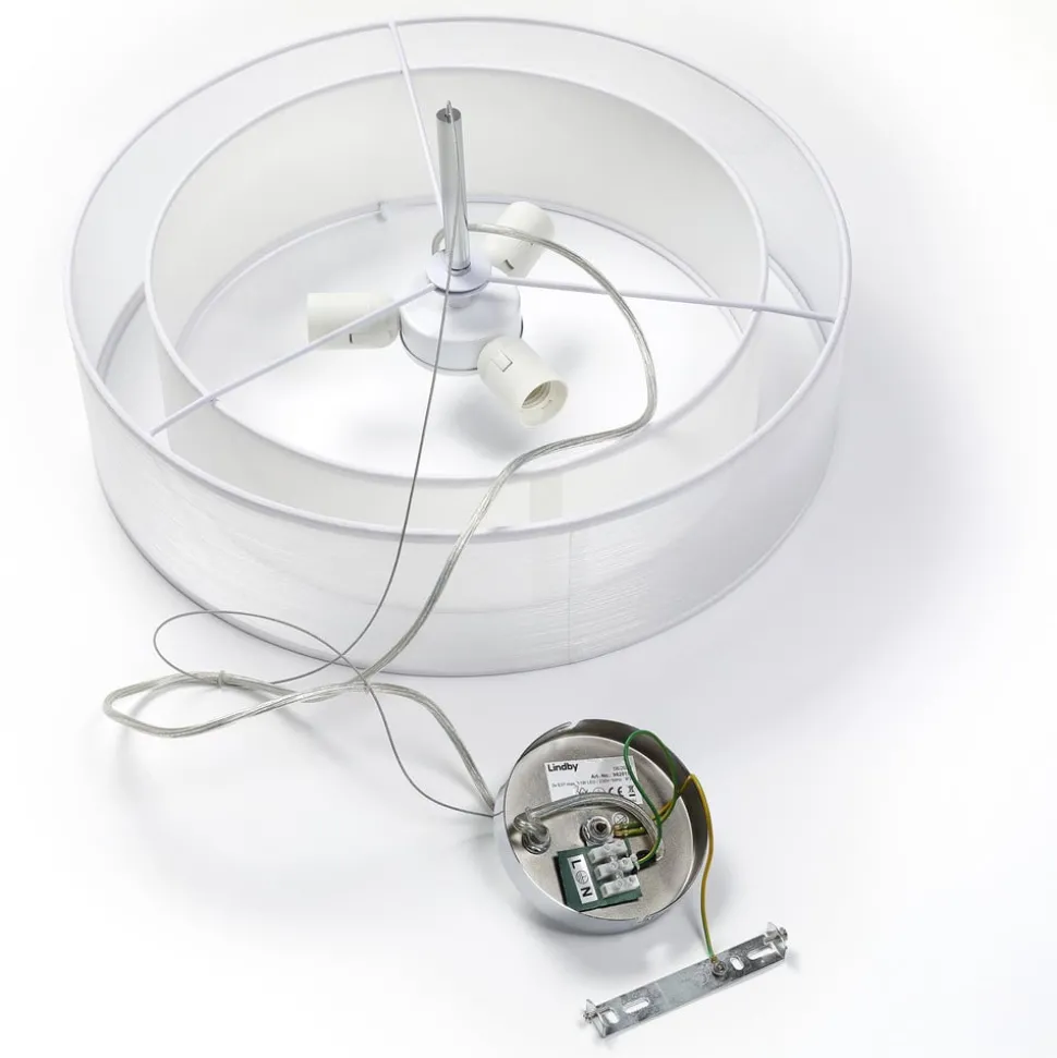 Lindby hanglamp Pikka, wit, textiel, Ø 50 cm, E27