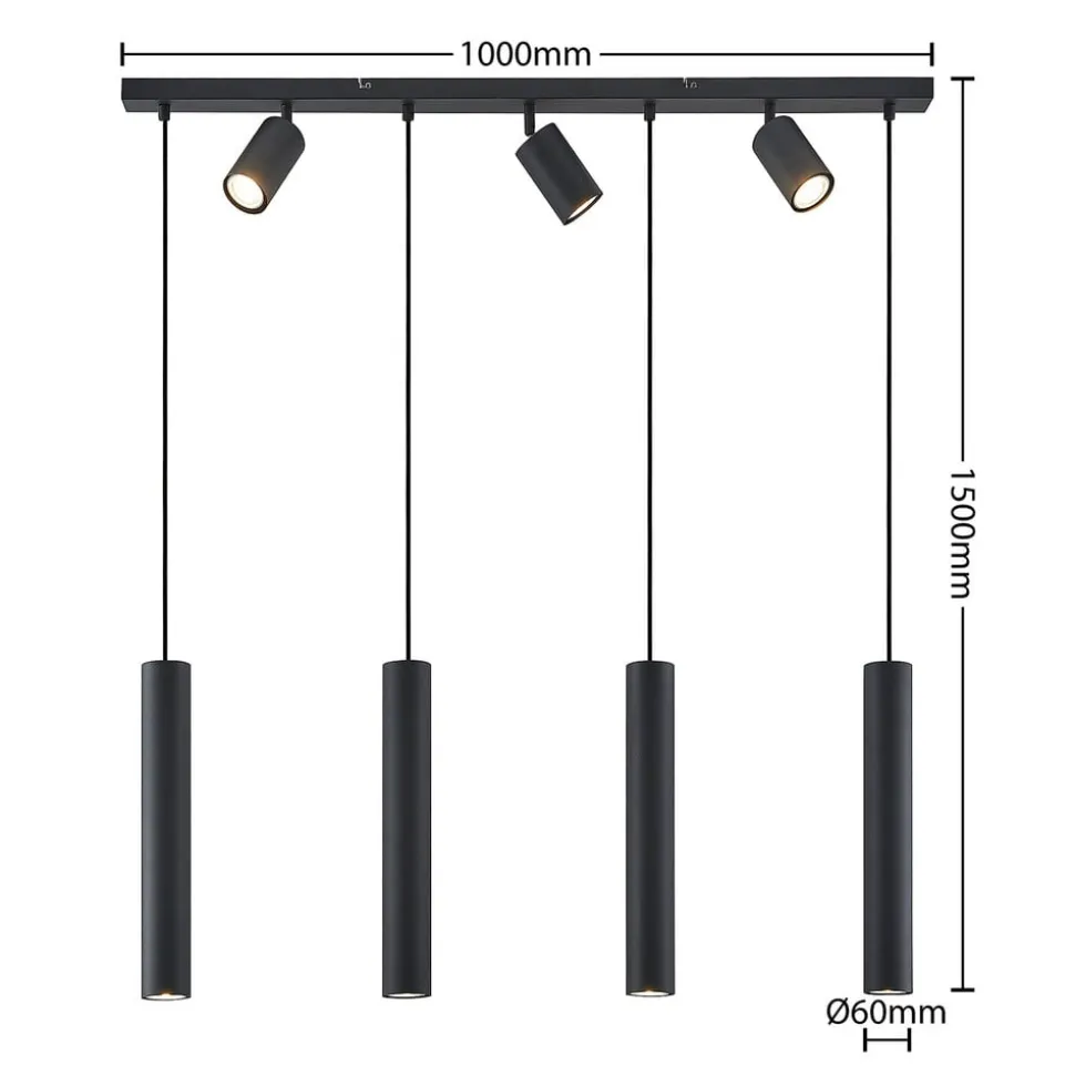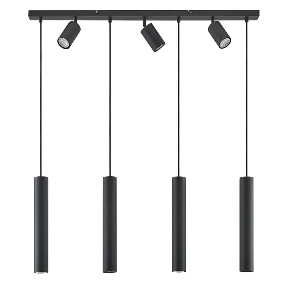 Lindby hanglamp Sanad, 100 cm, 7-lamps, zwart, GU10