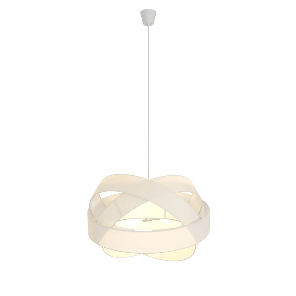 Witte hanglamp van stof Simaria bestaat uit drie ringen – ideaal voor woon- en slaapgedeelte Simaria is een mooie lichtbron voor gezellig wonen. De kap is gemaakt van stof en lijkt op een bol, maar is toch niet gewoon omdat hij uit drie ringen bestaat in plaats van één geheel. Het witte oppervlak van de textielstof creëert een prachtig zacht, gezellig lichteffect dat comfort benadrukt. De lamp kan net zo goed worden gebruikt in een hal als in een woon- of slaapkamer. De hanglamp creëert overal een bijzonder gezellig licht dat uitnodigt om te ontspannen en te blijven hangen. De E27 fittingen kunnen worden voorzien van lampen naar keuze, inclusief LED lamp en extra warme lichtkleur.