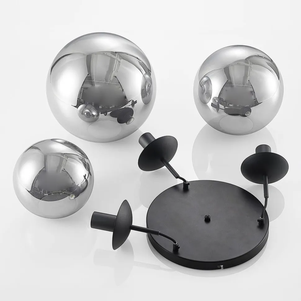Plafondhouder – Ø 30 cm, hoogte 2,5 cm; Ø glazen bollen – 20 cm, 25 cm, 30 cm