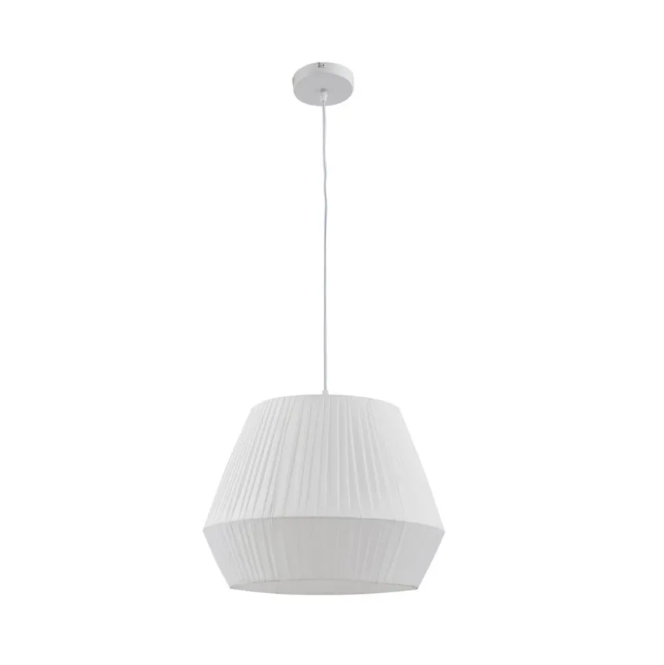 Hanglamp Vitore: Scandinavisch design ontmoet elegantie in wit Ontdek hanglamp Vitore, een harmonieuze combinatie van robuust metaal en natuurlijk textiel die een Scandinavisch tintje geeft aan je woonruimte. Deze lamp is een ideale keuze voor de woonkamer, keuken of slaapkamer en creëert een sfeer die zowel rustgevend als energiegevend kan zijn. De fijne structuur van de stof laat het licht zachtjes doorschijnen en creëert een warme, uitnodigende sfeer. Hoewel de hanglamp Vitore niet is uitgerust met een geïntegreerde dimmer, kan ze gemakkelijk worden gecombineerd met een externe dimmer om de lichtintensiteit naar wens aan te passen. Zo kun je de verlichting afstemmen op het moment van de dag of de gewenste stemming.