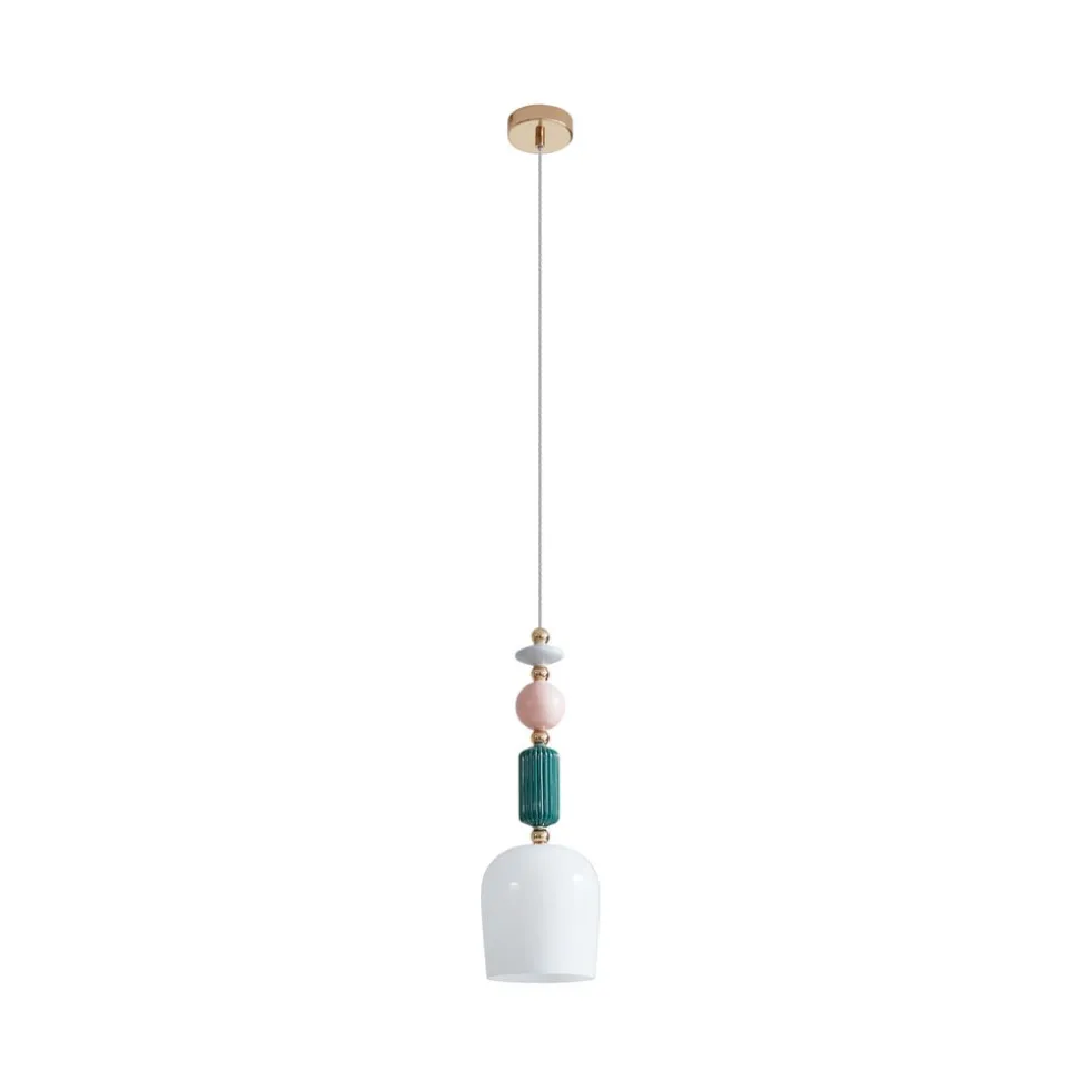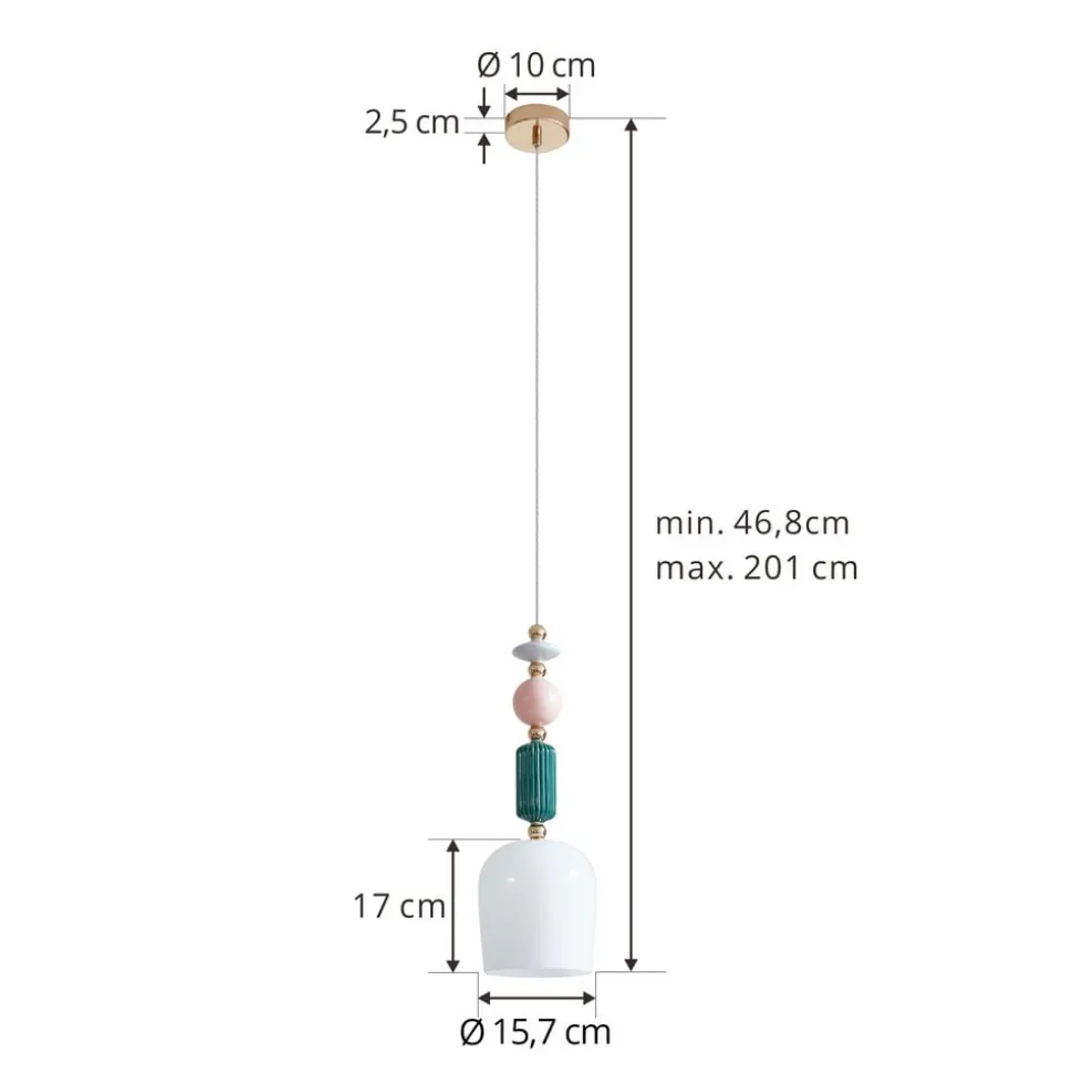 Kleurrijke hanglamp Ysoria met keramische kap en decoratieve elementen in verschillende vormen Breng gezelligheid en uitstekende lichtomstandigheden in huis met deze lamp. Met haar geweldige uitstraling maakt Ysoria het inrichtingsconcept van je woonkamer op een aangename manier compleet. Je kunt de lichtsterkte naar wens aanpassen met een externe dimmer (niet inbegrepen). Alle kwaliteiten en speciale kenmerken van het merk Lindby komen samen in deze hanglamp. De hanglamp in de kleuren opaal, messing, groen en roze is een must-have voor het creëren van een aangename sfeer in elke kamer. De lamp heeft een fitting E14. De totale look van je interieur wordt aangevuld door deze lamp, waarvoor de juiste plek snel gevonden is. Het aantrekkelijke lichtspel van de lamp creëert een gezellige, feelgood sfeer.