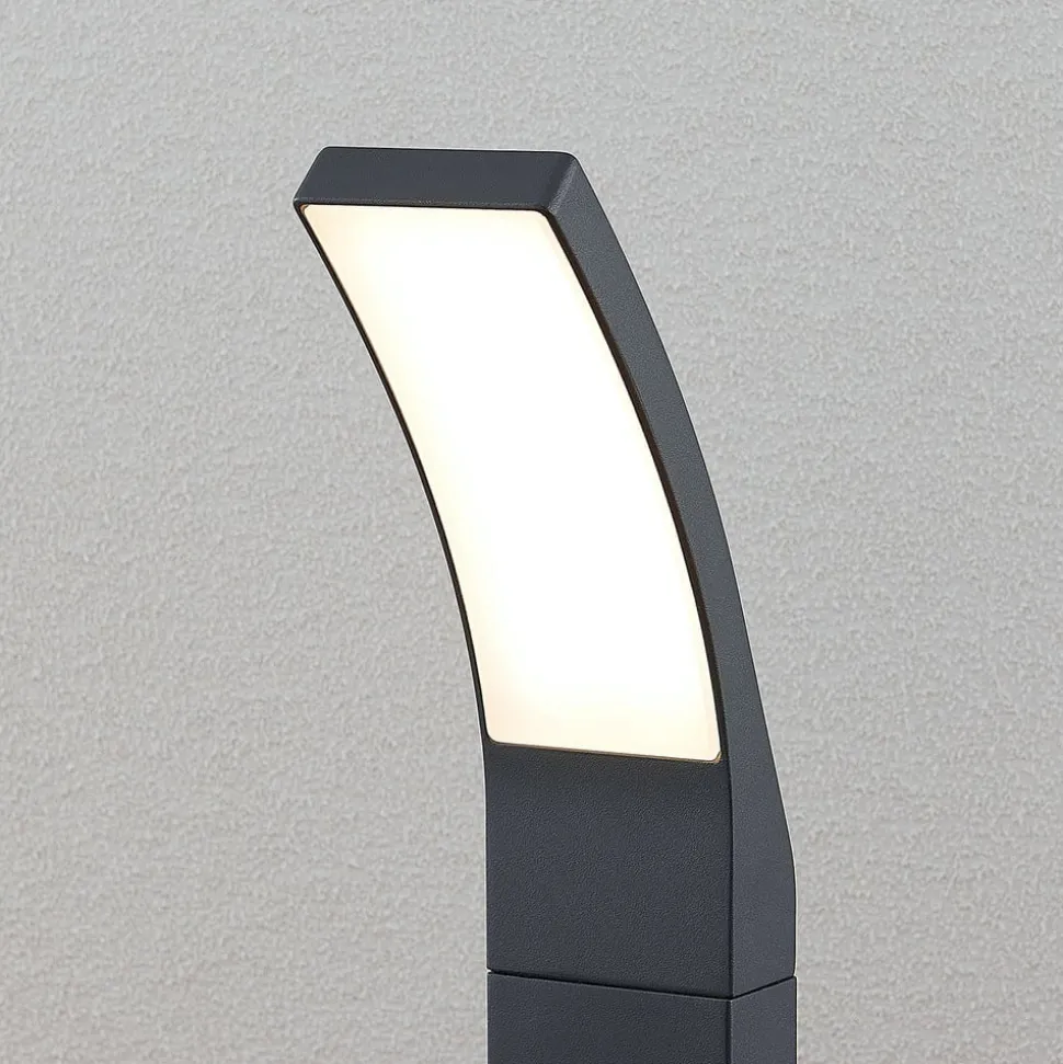 De donkergrijze LED tuinpadverlichting met schuine lampenkop Ilvita past in tal van moderne stijlen en decoreert buitenruimtes zoals binnenplaatsen en tuinen met een minimalistische uitdrukking. De lampenkop van de tuinpadverlichting staat lichtjes schuin zodat het licht ook naar beneden gericht is. Een diffuser van wit polycarbonaat zorgt voor verblindingsbescherming en zacht licht. Het oppervlak van de gegoten aluminium behuizing is afgewerkt met een tijdloze antracietkleurige kap die overal goed past. De LED’s produceren een helder licht met een laag energieverbruik.