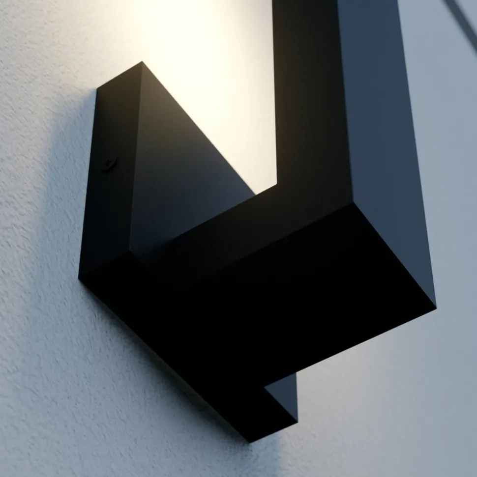 De armatuur van de buitenlamp is in een moderne vorm vormgegeven. Geheel geometrisch en lineair ziet de armatuur eruit als een oversized L aan de zijkant, die perfect past bij bijvoorbeeld een huisgevel. De krachtige, energiezuinige en warmwitte LEDs zitten achter een matte glasruit aan de achterkant van de armatuur en zijn zo beschermd tegen ongunstig weer. In de duisternis donker schijnen ze naar de muur toe en creëren een indirect oriëntatielicht.
