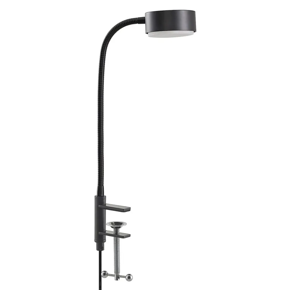 Lindby Kaylou klemlamp, zwart, flexibele arm, aluminium