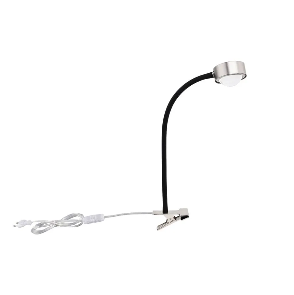 Nikkelkleurige Jyla klemlamp met bijpassende GX53 lamp De Jyla klemlamp is een praktische aanvulling voor gebruik binnenshuis. Hij kan bijvoorbeeld op tafels worden geklemd en vormt een aanvulling op de algemene verlichting in de ruimte. Hij wordt ook geleverd met een bijpassende GX53 lamp, die warmwit licht genereert en in drie fasen dimbaar is. De meegeleverde GX53 lamp heeft een gebogen lens en ziet er daardoor uit als een glazen halve bol. Met een schakelaar kan de lamp op de gebruikelijke manier worden in- en uitgeschakeld. Dankzij de 3-staps dimtechnologie met geïntegreerde uit-functie kan hij ook worden gedimd tot drie verschillende helderheidsniveaus door de schakelaar meerdere keren in te drukken: 100%, 50% en 25%.