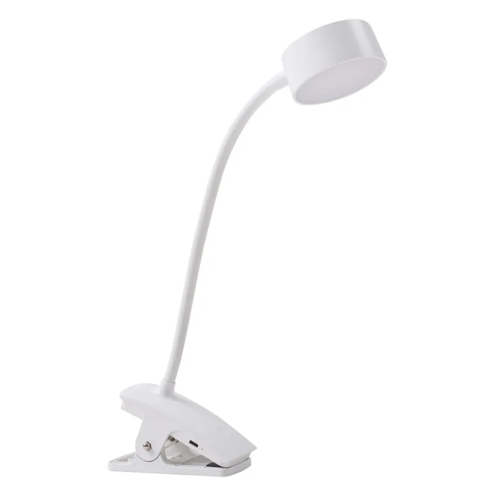 Dimbare Maori LED klemlamp met oplaadbare batterij en flexibele arm De Maori LED klemlamp is een praktisch verlichtingselement met een slank, ingetogen ontwerp. Dankzij de klem kan hij op talloze plaatsen worden gemonteerd en de praktische werking op batterijen maakt hem volledig flexibel en onafhankelijk van een stroombron. Dankzij de flexibele arm kan hij naar wens worden uitgelijnd en zowel de helderheid als de lichtkleur kunnen worden aangepast met de drukknoppen. De oplaadbare batterij kan eenvoudig worden opgeladen met de meegeleverde USB-kabel (excl. netadapter) – lichtduur 5 uur – oplaadtijd 6 uur – dimbaar (15%, 40%, 100%) – instelbaar wit, traploos, 3.000 K – 6.500 K