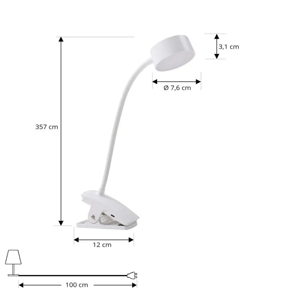 Lindby klemlamp Maori, wit, metaal, CCT, dimbaar.