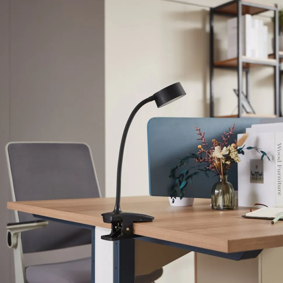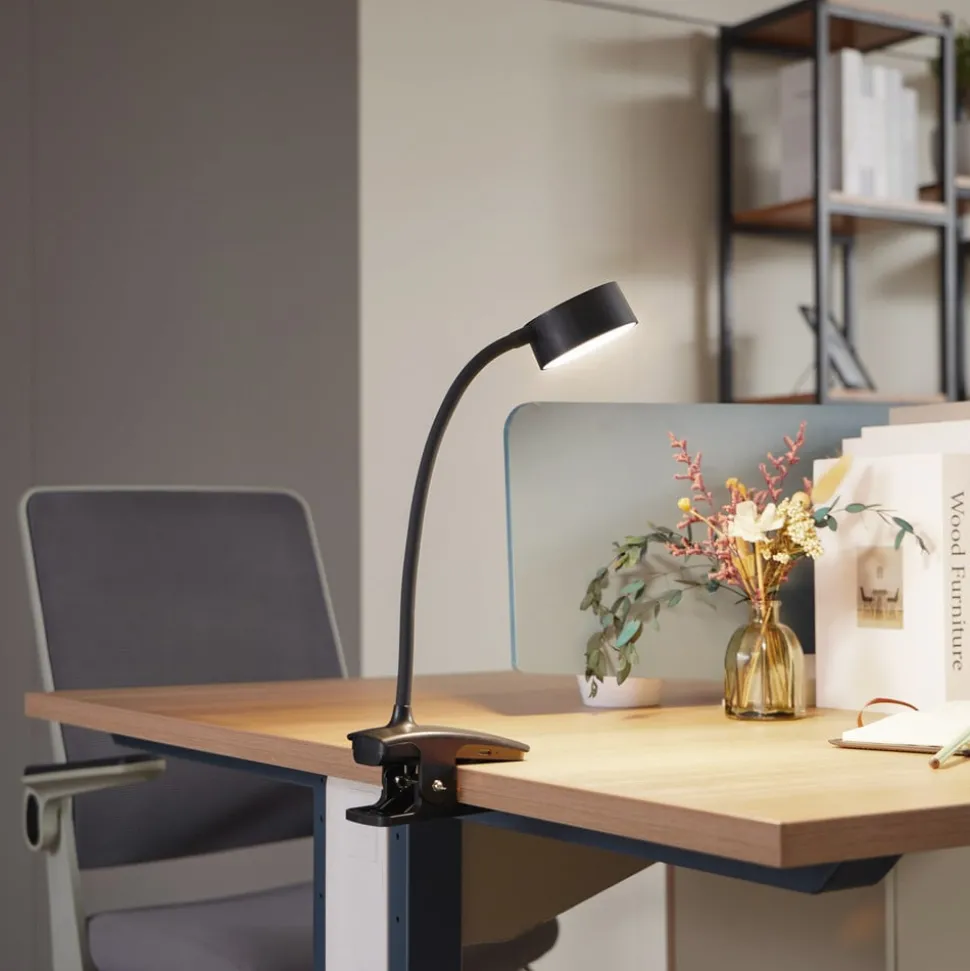 Dimbare Maori LED klemlamp met oplaadbare batterij en flexibele arm De Maori LED klemlamp is een praktisch verlichtingselement met een slank, ingetogen ontwerp. Dankzij de klem kan hij op talloze plaatsen worden gemonteerd en de praktische werking op batterijen maakt hem volledig flexibel en onafhankelijk van een stroombron. Dankzij de flexibele arm kan hij naar wens worden uitgelijnd en zowel de helderheid als de lichtkleur kunnen worden aangepast met de drukknoppen. De oplaadbare batterij kan eenvoudig worden opgeladen met de meegeleverde USB-kabel (excl. netadapter) – 5 uur lichtduur – 6 uur oplaadtijd – dimbaar (15 %, 40 %, 100 %) – instelbaar wit, traploos, 3.000 K – 6.500 K