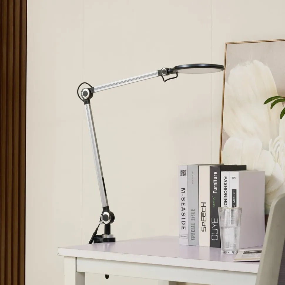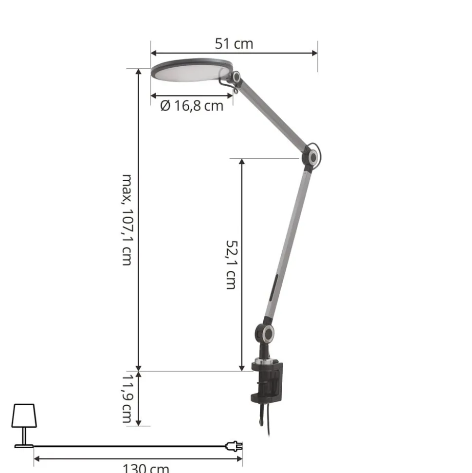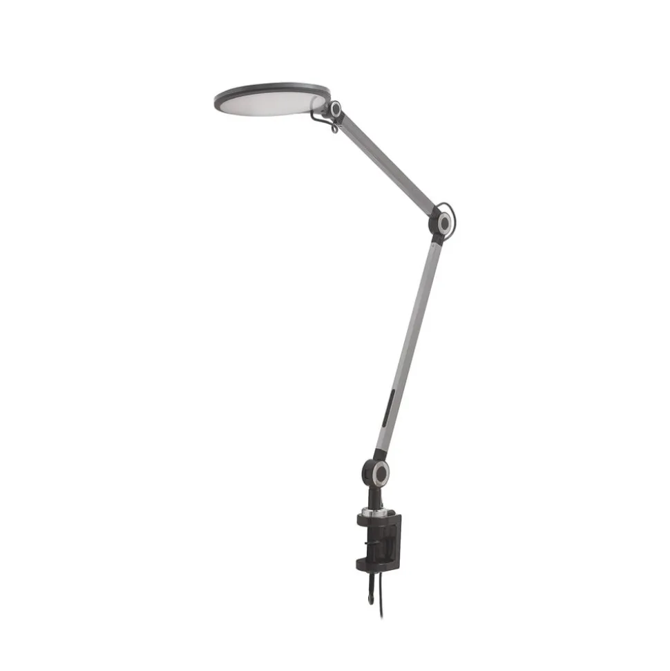 Nyxaris klemlamp in grijze kleur met zwenkarm De klemlamp is ideaal voor het verlichten van een bureau. Hij wordt met een klem aan het bureau bevestigd en kan de verlichting gemakkelijk naar wens aanpassen dankzij de praktische zwenkarm. De lamp kan ook worden gedimd en de lichtkleur kan in drie stappen worden gewijzigd (warmwit, universeel wit en daglicht). Dit gebeurt met een aanraakschakelaar op het frame.