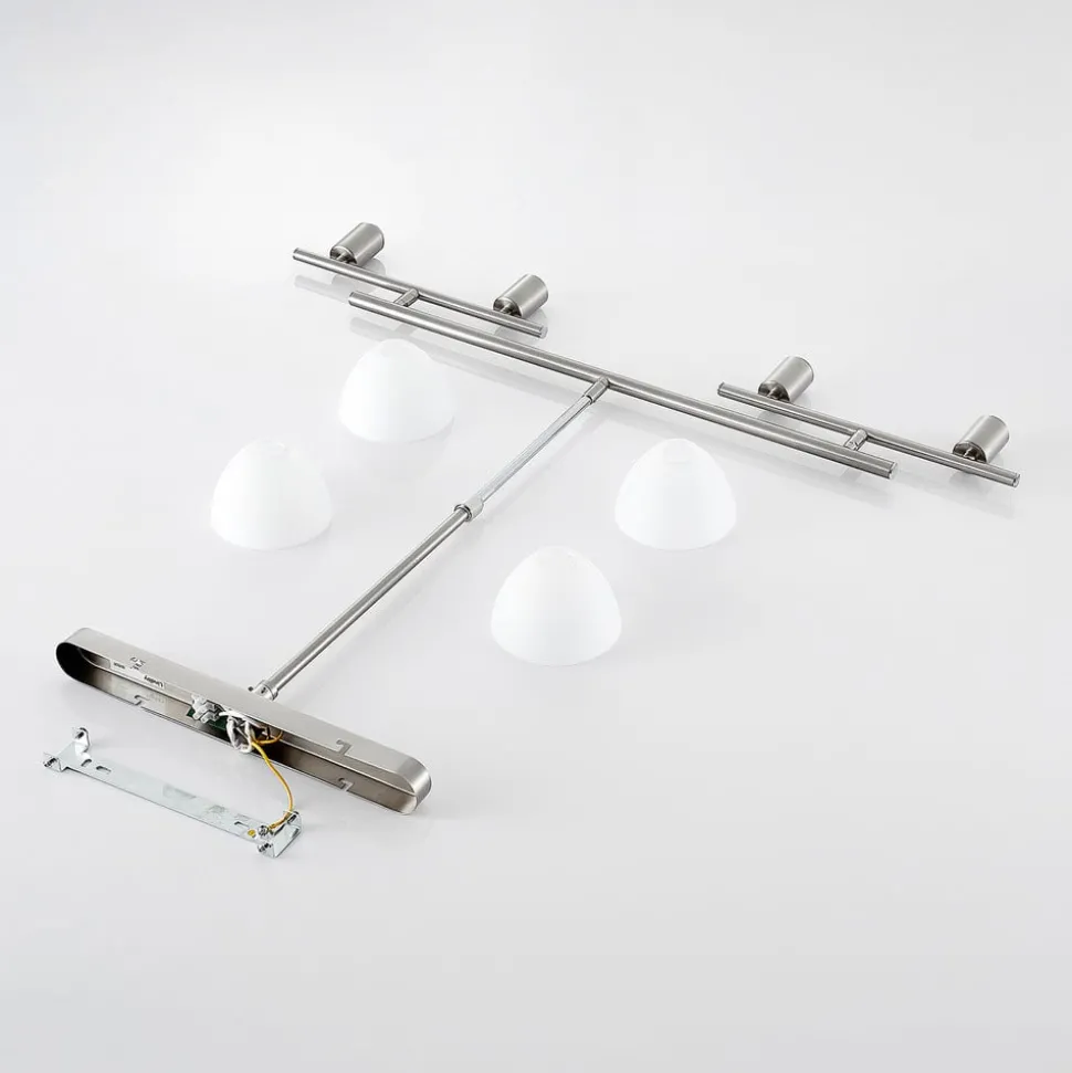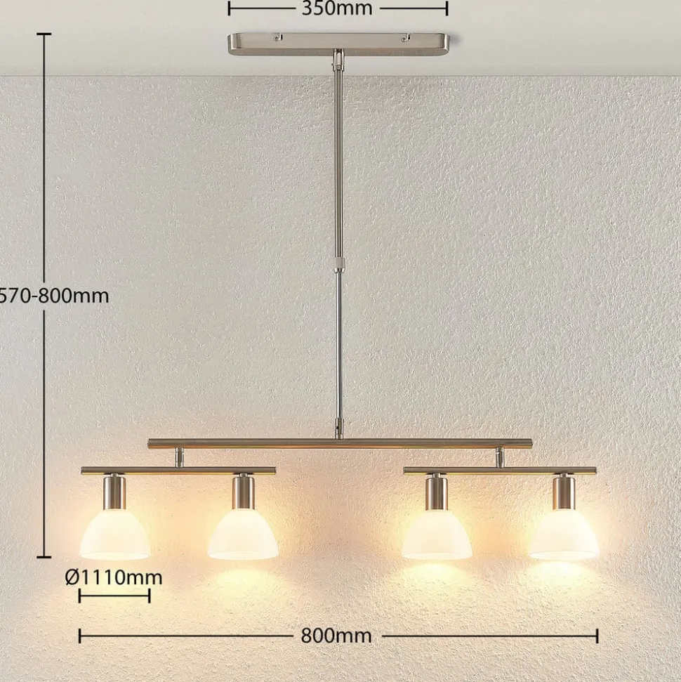 De hanglamp Kordelia is een slimme verlichtingsoplossing voor een woonkamer- of eettafel. De elegante lampenkappen zijn klassiek op een rijtje gezet, maar hebben aparte ophangingen. Deze ophangingen zijn zwenkbaar en bovendien in hoogte verstelbaar, zodat Kordelia altijd voor optimale verlichting zorgt. Het glas van de lampenkappen is gesatineerd en zorgt zo voor een aangename lichtverdeling. Voor het overige is de armatuur vrij onopvallend ontworpen, zodat de focus ligt op de lampenkappen.