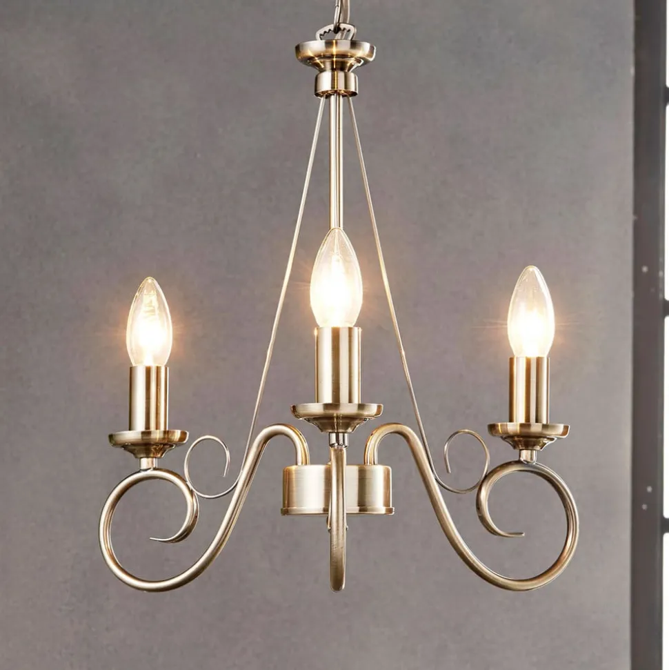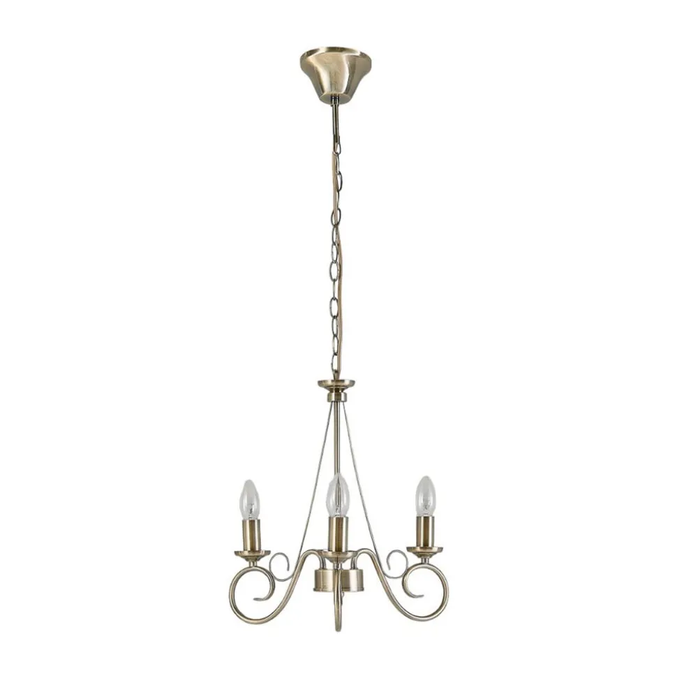 Prachtige Marnia kroonluchter in antiek messing in een 3-lamps uitvoering Alles aan deze kroonluchter oogt elegant en subliem, waardoor het een geweldige aanvulling is op eet- en woonkamers, die er meteen een beetje glamoureuzer uitzien in het licht van Marnia. Het hele frame is afgewerkt in antiek messing: van de kaarsenhouders tot de lampenarmen en van het midden tot de ketting en plafondophanging. Dit creëert een harmonieus geheel dat kan worden gelijkgesteld aan elegantie en stijlvolle expressie. De metalen lampenarmen lijken op romantische ranken omdat ze zo mooi gedraaid zijn en daardoor wat speelser ogen.