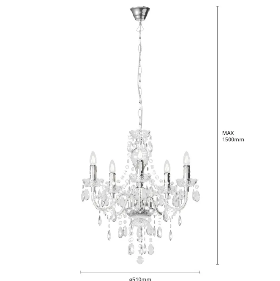 Lindby kroonluchter Merida, chroom, metaal, 5-lamps, Ø 52 cm