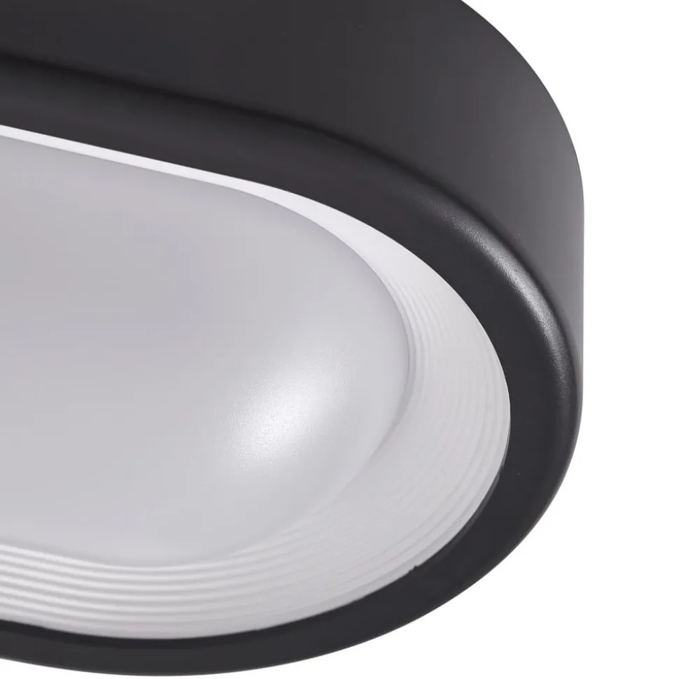 Niniel ovale LED buiten plafondlamp in zwart De Niniel LED buiten plafondlamp in zwart en ovale vorm is de perfecte keuze voor iedereen die op zoek is naar een moderne en energiezuinige verlichtingsoplossing voor buiten. Met een beschermingsgraad van IP65 is dit armatuur optimaal beschermd tegen weersinvloeden en biedt daarom betrouwbare buitenverlichting. De permanent geïnstalleerde LED’s genereren warmwit licht dat een ontspannen sfeer creëert. De moderne stijl van de lamp past naadloos in elke omgeving en geeft uw buitenruimte net dat beetje extra.