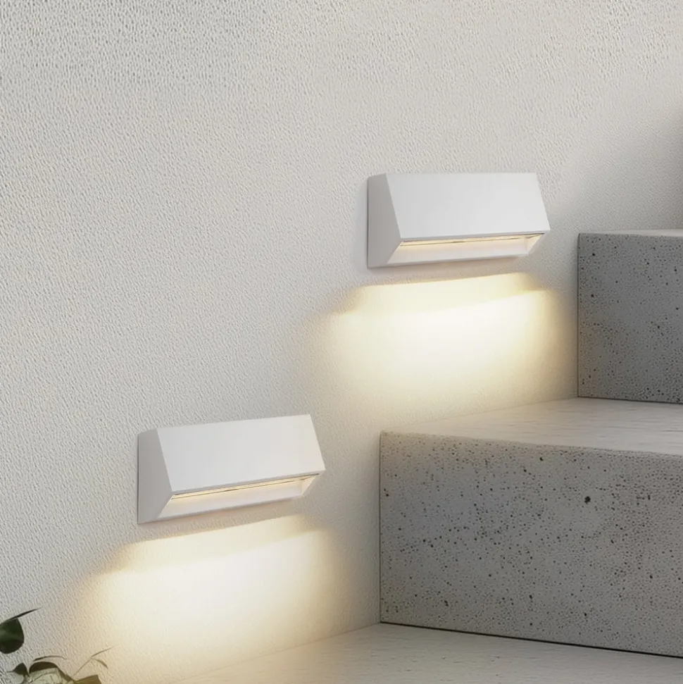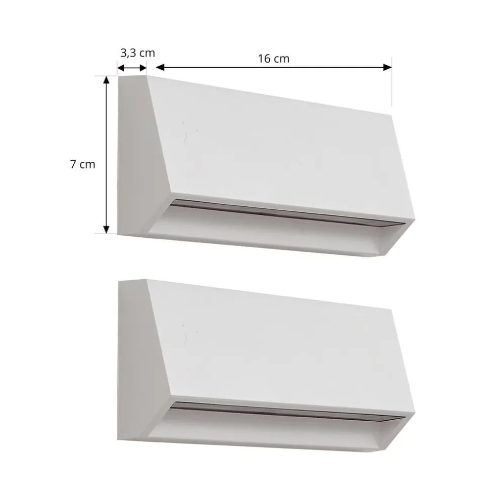 Witte LED buiten wandlamp Appeso in hoekig design De witte LED buiten wandlamp Appeso combineert modern design met hoge functionaliteit. De beschermingsgraad IP65 garandeert dat de lamp betrouwbaar en veilig werkt, zelfs in barre weersomstandigheden. Dit maakt het de ideale verlichtingsoplossing voor balkons en patio’s. De geïntegreerde LED-lichtbron creëert niet alleen een aangename sfeer, maar wordt ook gekenmerkt door zijn energie-efficiëntie. Met haar eigentijdse stijl past de lamp naadloos in moderne buitenruimten en creëert ze een uitnodigende sfeer die zowel inspireert als aanzet tot productiviteit – geleverd in een praktische set van 2